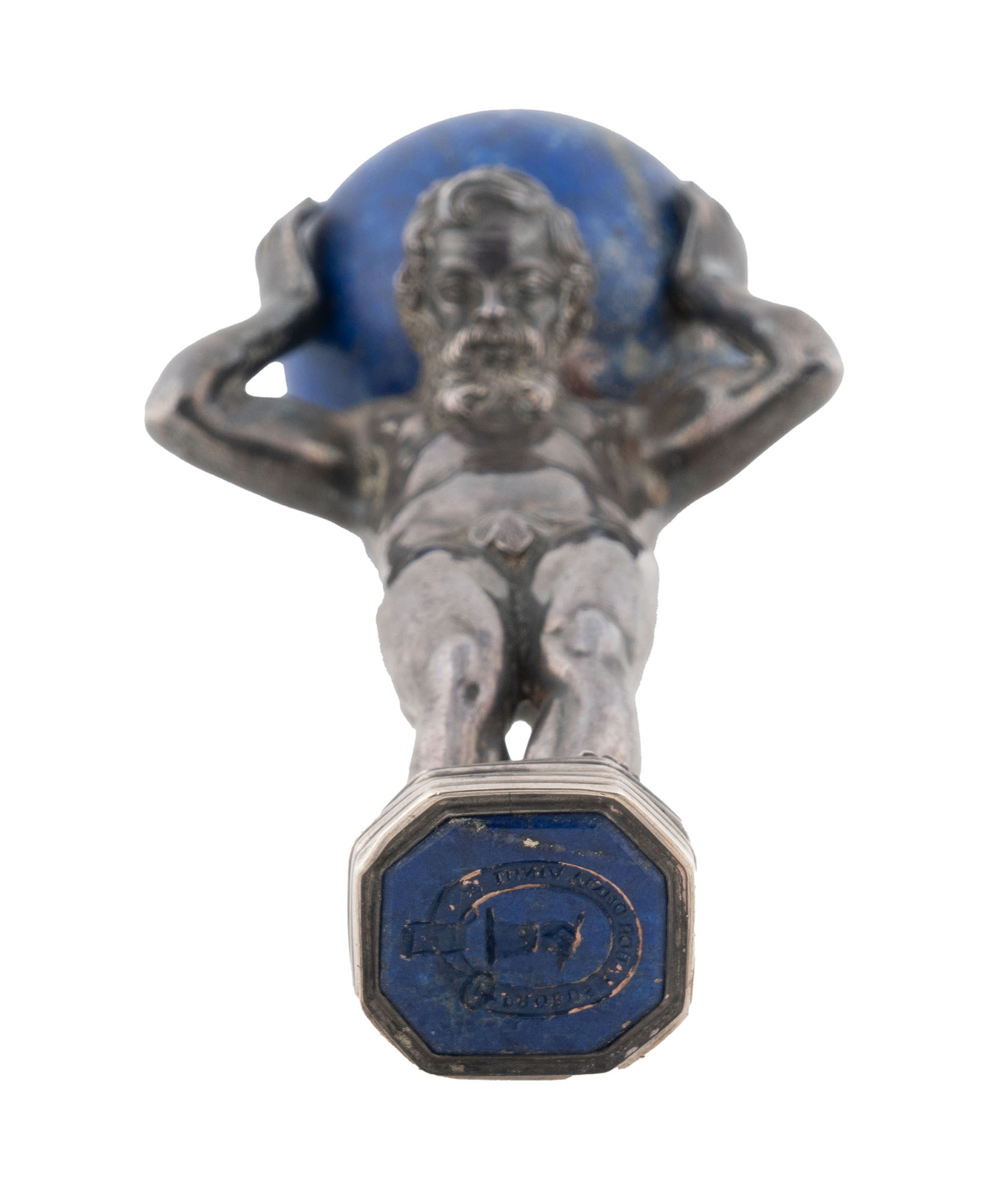 Sigillo con Atlante in argento e lapislazzulo. Fine XIX secolo.