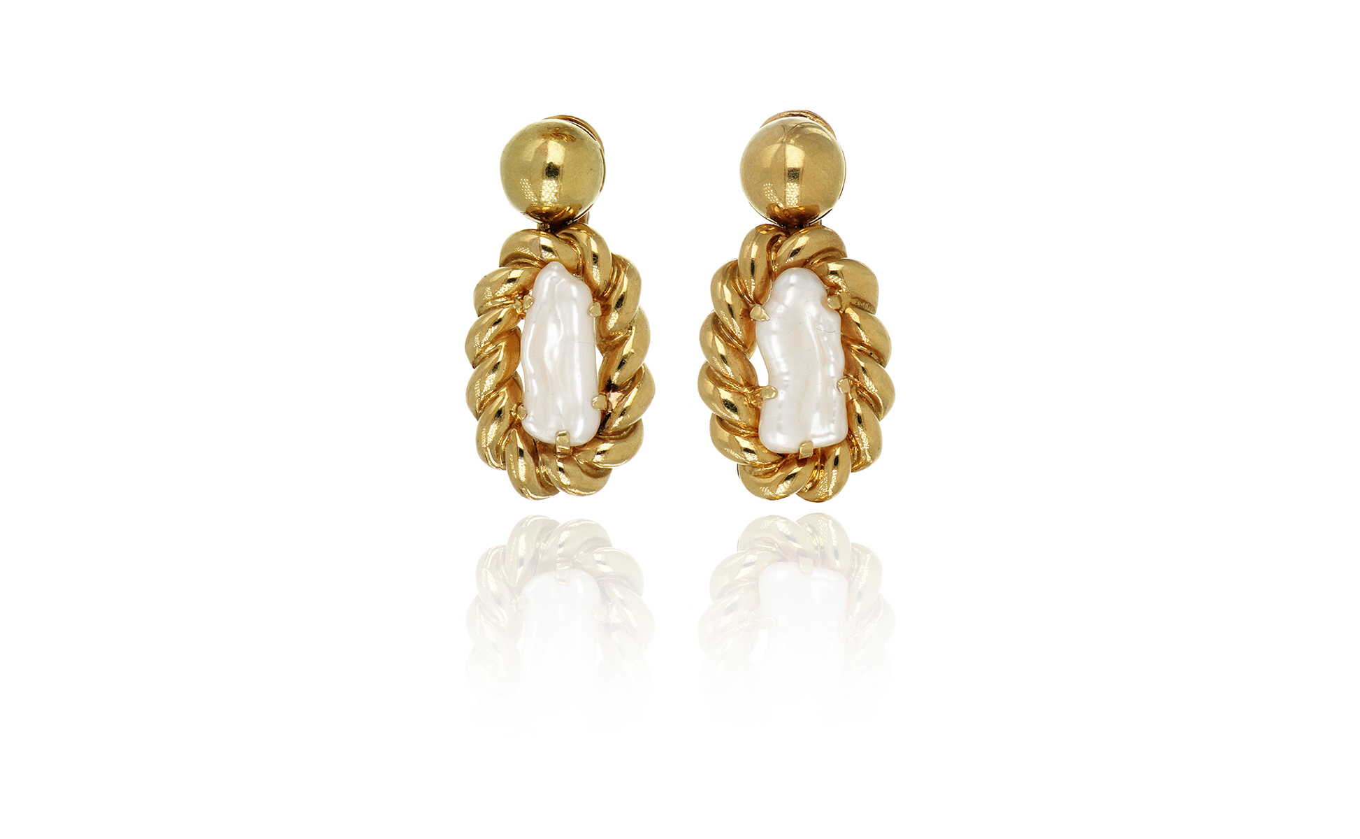 SABBADINI orecchini in oro giallo a torciglione con perle barocche al centro.