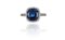 Anello in oro bianco con zaffiro centrale di 4 68 ct. taglio a cuscino di forma quadrata accompagnato da certificato gemmologico GFCO svizzero che ne attesta l'assenza di trattamento termico e la provenienza geografica Nigeria.