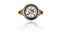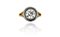 Anello a solitario in oro giallo e argento il gambo sdoppiato sostiene un doppio giro di metallo nel quale è incastonato un diamante taglio vecchia europa di ct. 2 30 ca. h. 4 56 mm colore I/K purezza VVS/VS fluorescenza lieve.