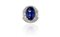 Anello in oro bianco e giallo con grande zaffiro centrale di forma ovale taglio misto di 17 23 ct accompagnato da verifica gemmologica del CISGEM di Milano che ne attesta l'origine metamorfica riconducibile allo SriLanka (Ceylon) e l'assenza di trattamento termico.