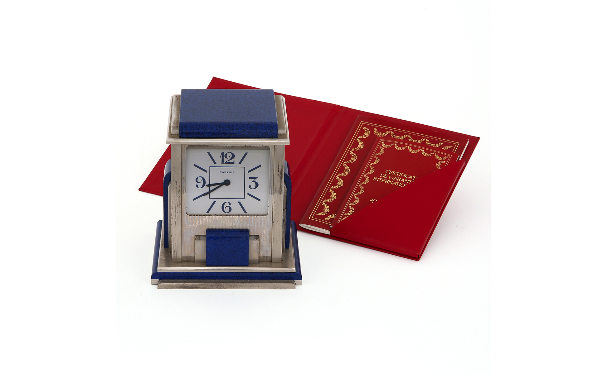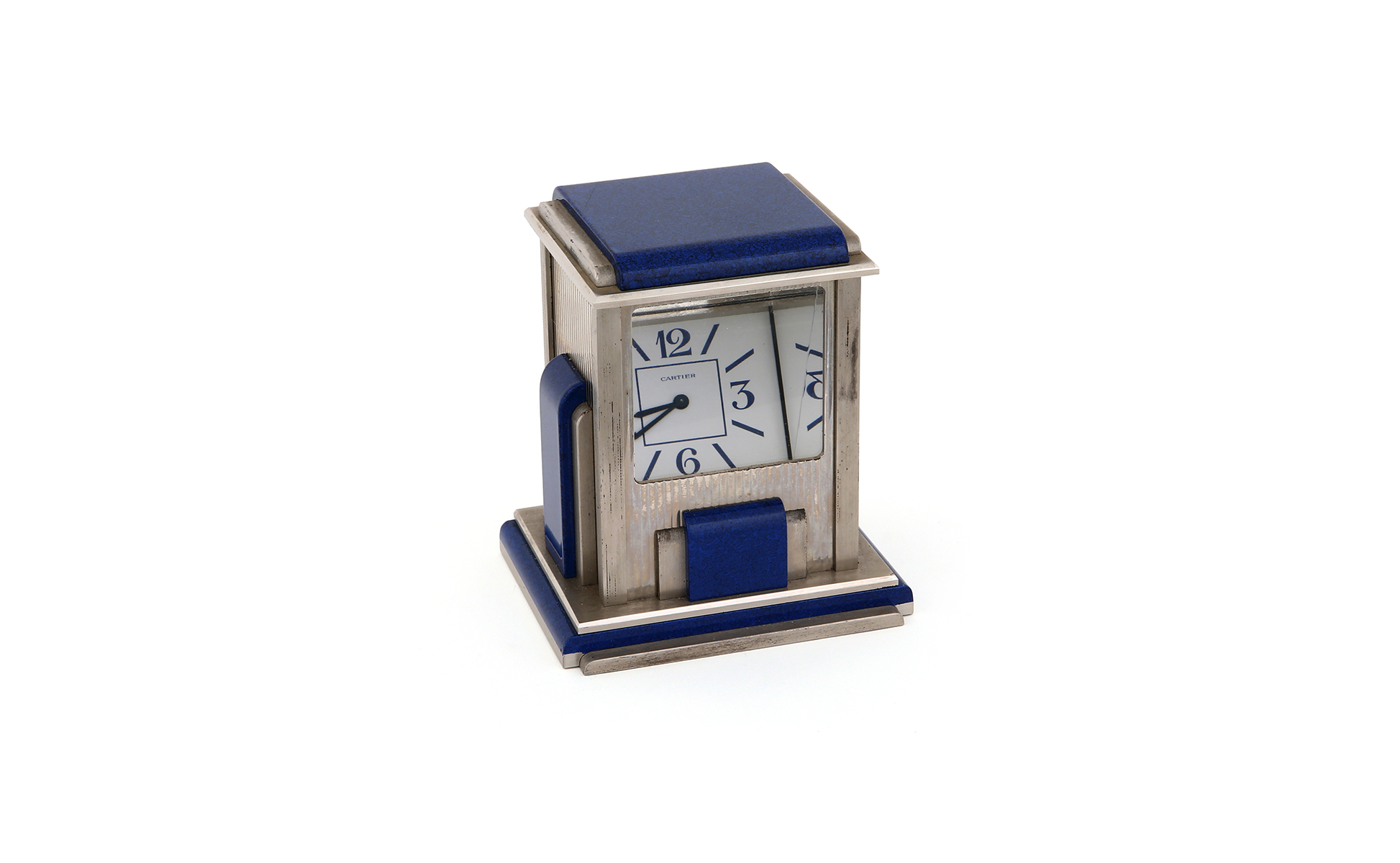 CARTIER - PENDULETTE PRISME Orologio da appoggio con movimento elettromeccanico al quarzo ref 9118 bilancere a spirale struttura in metallo placcato argento 20 micron quadrante a proiezione prismatica. Numeri arabi ai quarti sfere a gladio.