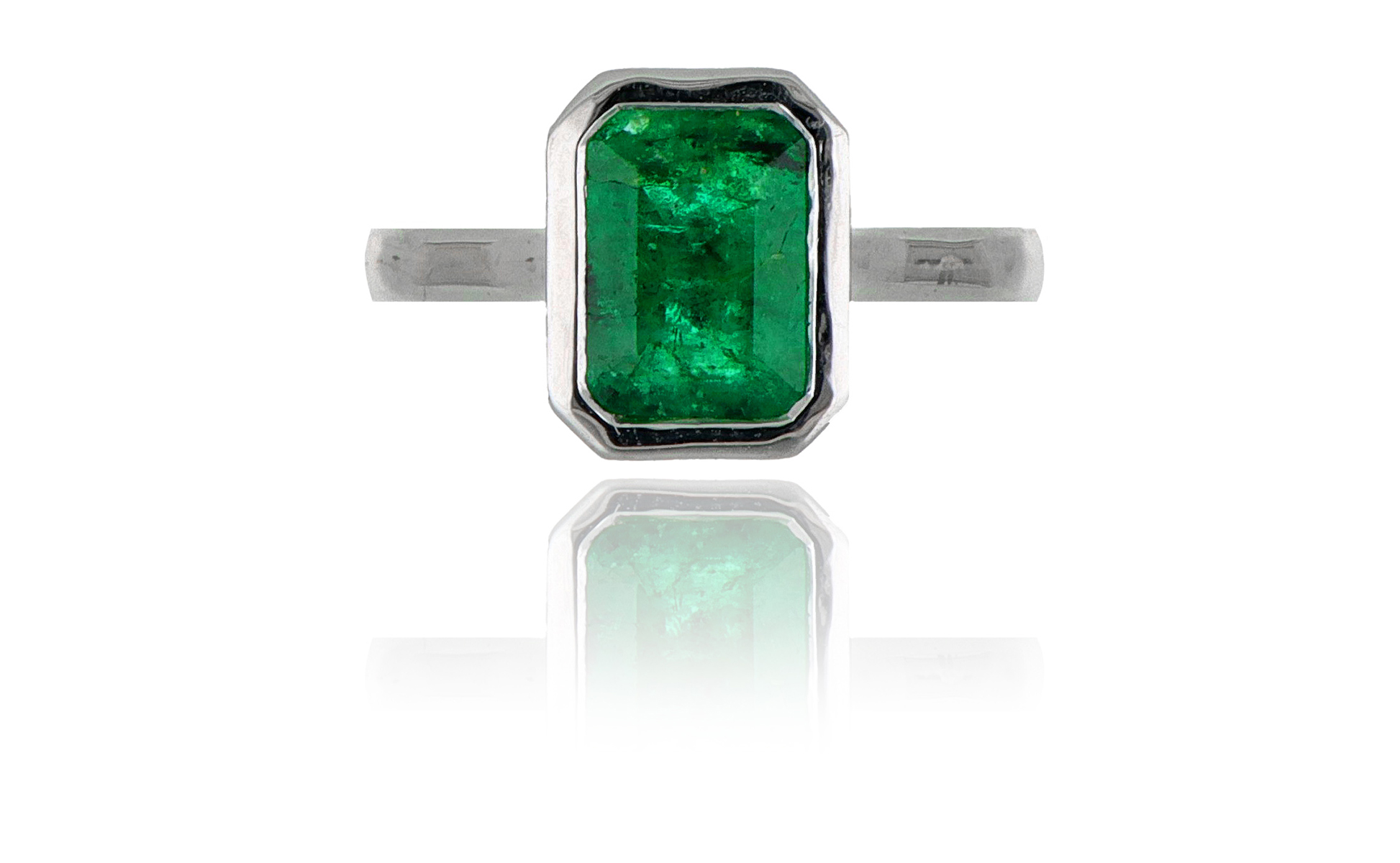 Anello in oro bianco 9kt con smeraldo centrale di 1 83 ct e diamanti per totale 0 20 ct stimati.