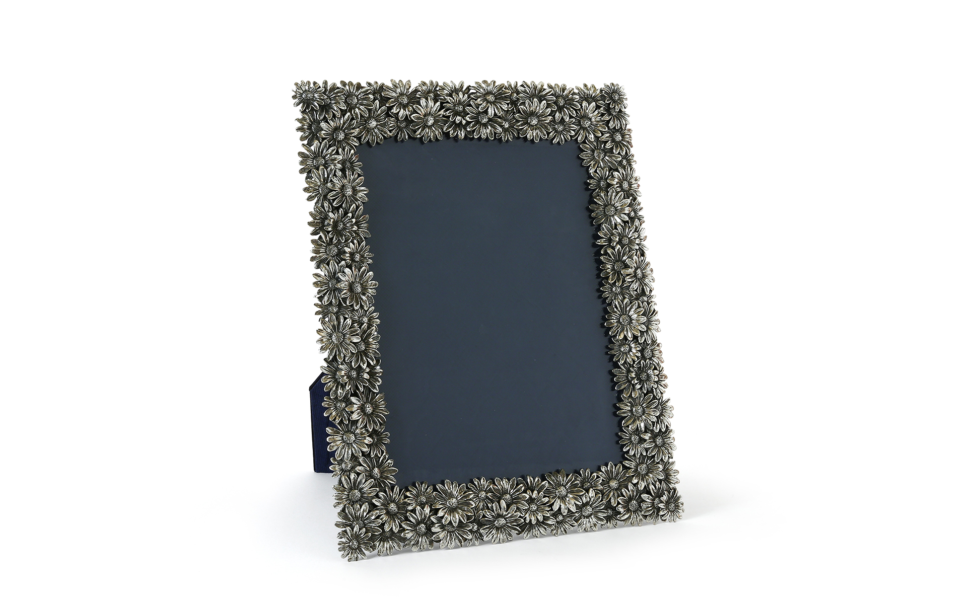 GIOVANNI RASPINI - Grande cornice in argento 800 contornata da motivo a margherite oltre al vetro portafoto completa il corredo lo specchio da montare.