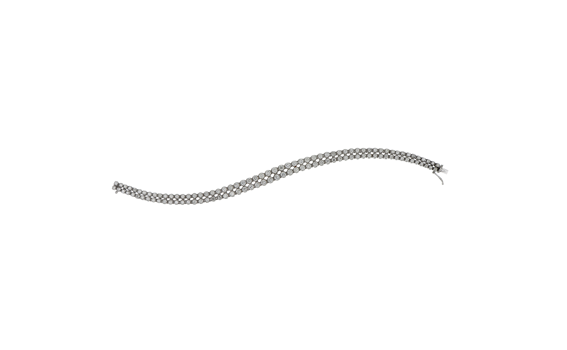 Bracciale in oro bianco a doppio tennis scalare realizzato con due file di diamanti taglio brillante a rincorrersi piu' grandi al centro per complessivi ct. 3 50 ca.