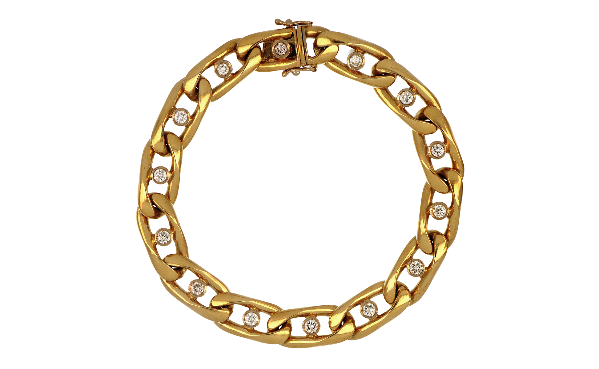 Bracciale in oro giallo maglia groumette piena la materica manifattura è impreziosita da 14 diamanti taglio brillante per ct. 1 50 ca.