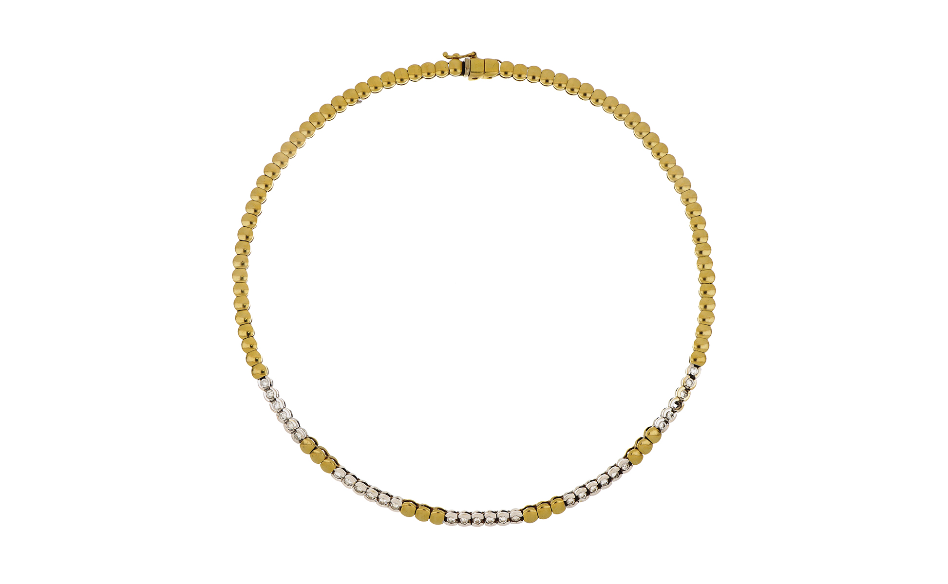 Girocollo in oro giallo e bianco al centro 5 settori incassati con 6 diamanti taglio brillante ciascuno per ct. 3 00 ca.