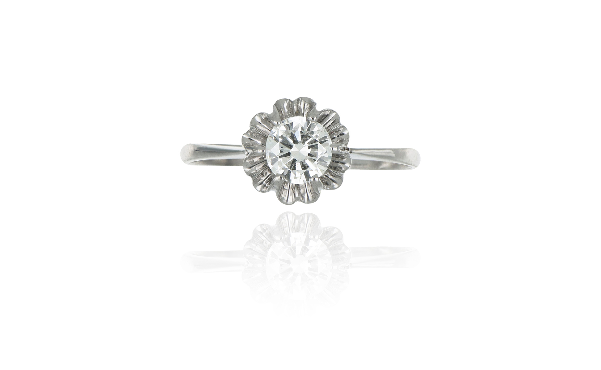 Anello in oro bianco a solitario diamante taglio brillante di ct. 0 50 ca.