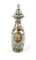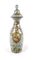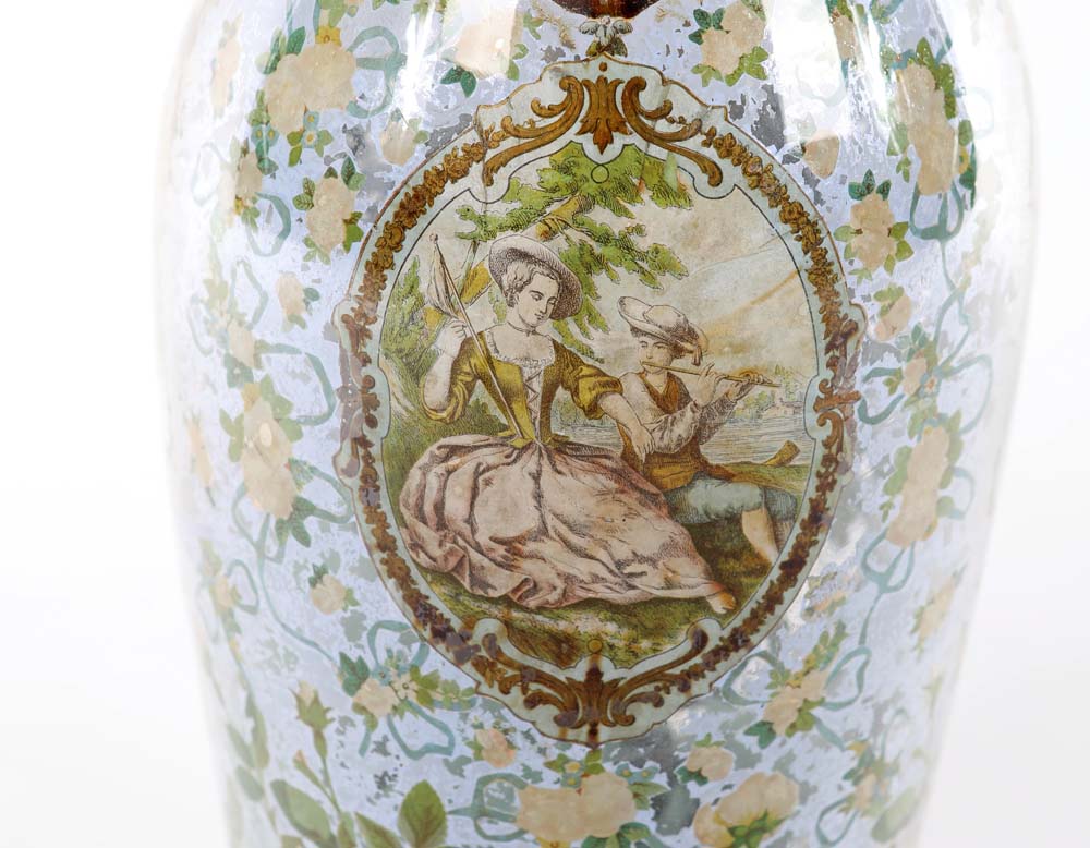 Vaso in vetro con coperchio decorato ad arte povera, Piemonte, XVIII secolo corpo a balaustro con figure europee su fondo celeste. Difetti alla decorazione altezza cm 65