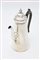 Caffettiera in argento, Londra, 1747 corpo liscio di forma troncoconica decorata da un "crest" inciso; coperchio a cupolino incernierato sormontato da pinnacolo, versatoio poliedrico sagomato con orlo caratterizzato da un piccolo ricciolo, manico in legno