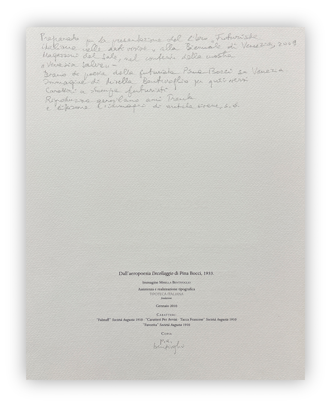 Firma e numerazione (Esemplare P.A.) a matita al fronte