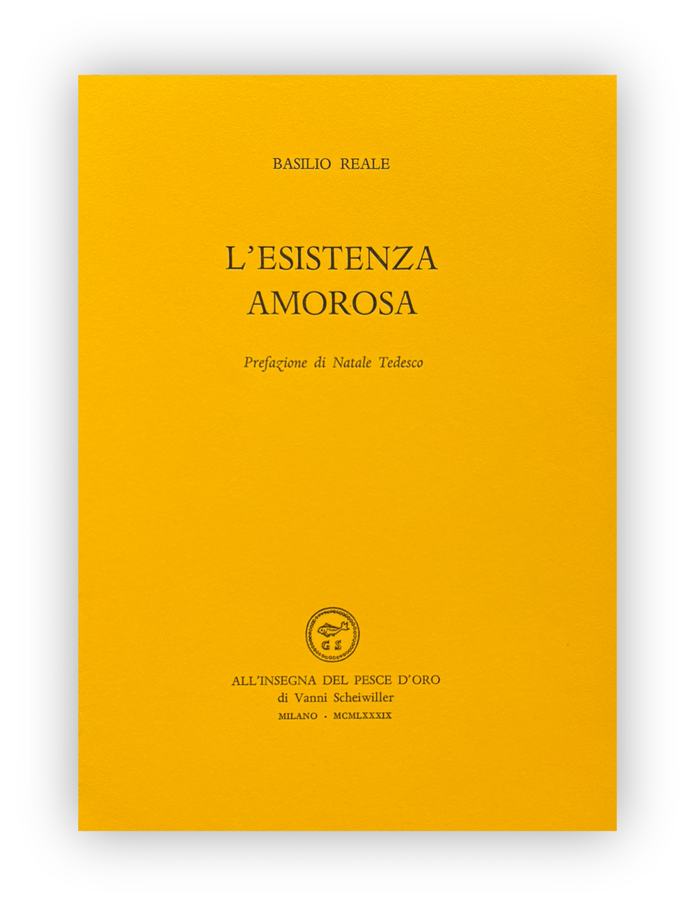 Libro d'arte contenente poesie di Basilio Reale, una prefazione di Natale Tedesco e una acquaforte di Walter Valentini recante firma e numerazione (Esemplare XLII/L) a matita al fronte