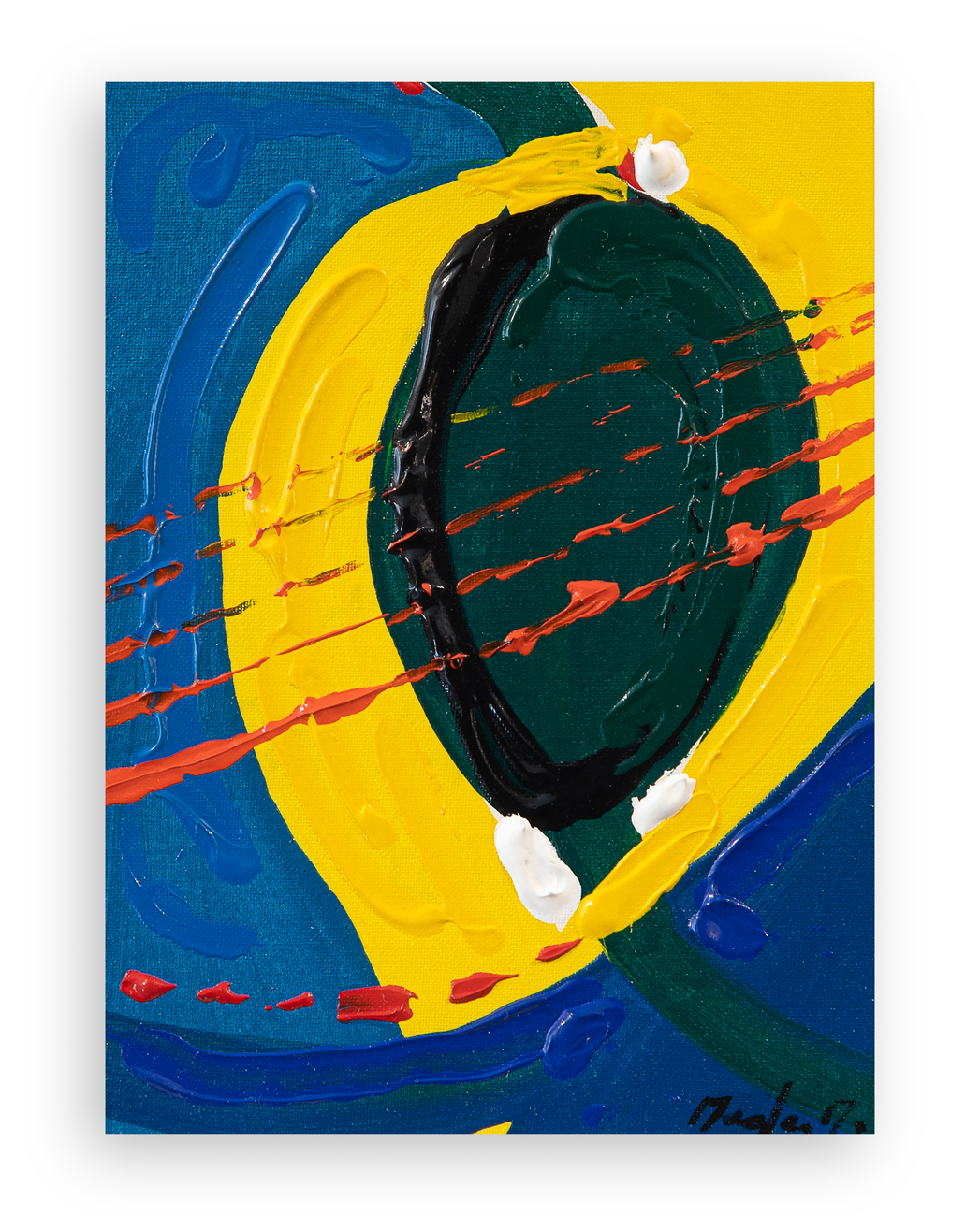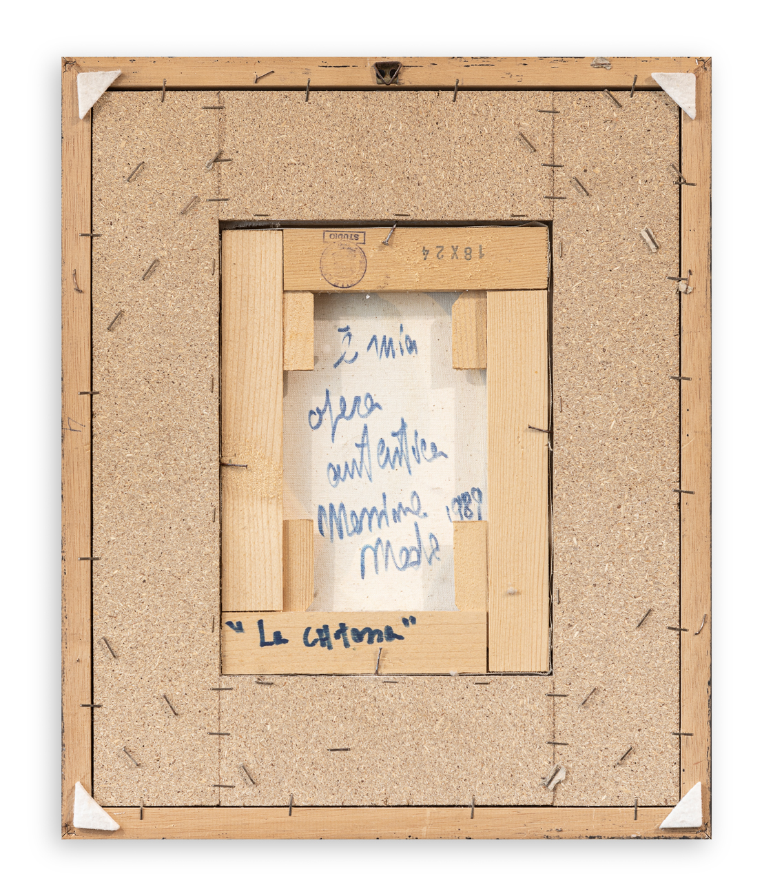 Firma, titolo, datazione e dichiarazione di autenticità dell'Artista al retro
