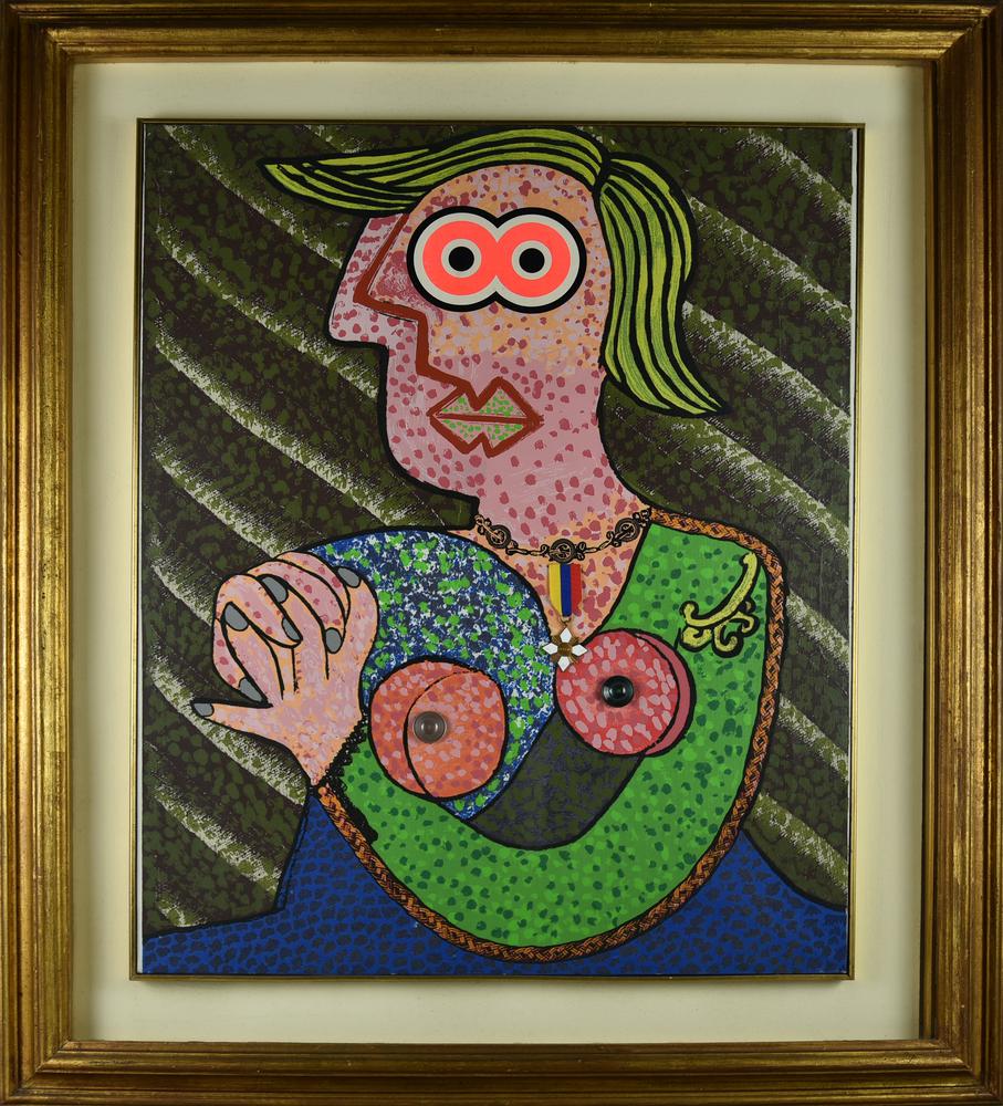 Enrico Baj (1924 - 2003) MATILDE DI CANOSSA, 1971 serigrafia e collage su...