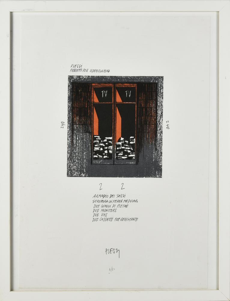 Fabrizio Plessi (1940) PROGETTO PER VIDEOSCULTURA serigrafia, cm 50x35; es....