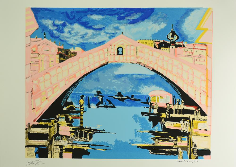 Remo Brindisi (1918 - 1996) VENEZIA, PONTE DI RIALTO serigrafia su carta, cm...