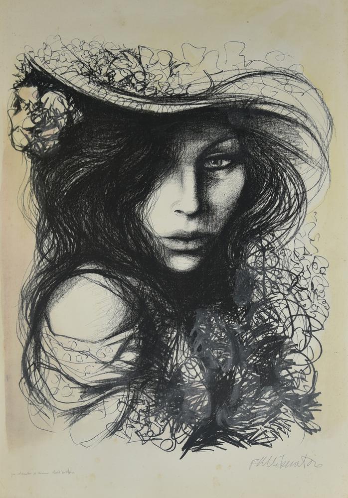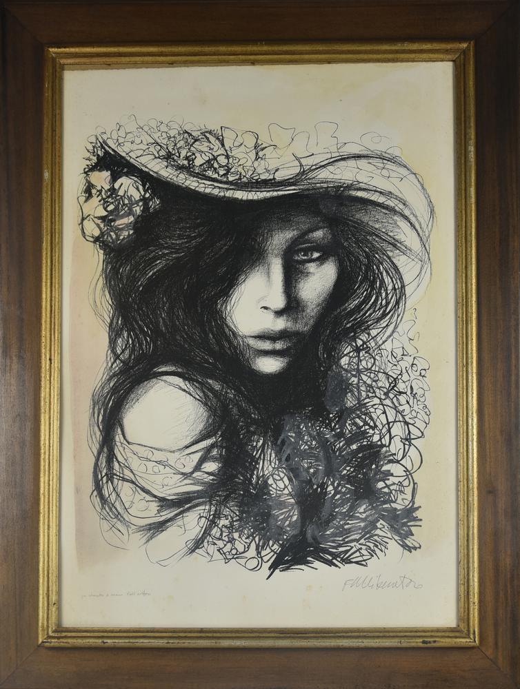 Fausto Maria Liberatore RITRATTO DI DONNA litografia colorata a mano, cm...
