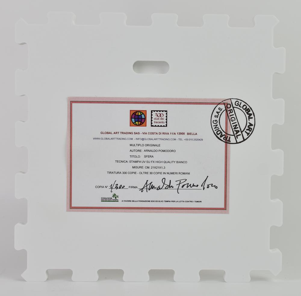 Arnaldo Pomodoro (1926) SFERA stampa UV su FX high quality bianco, cm...