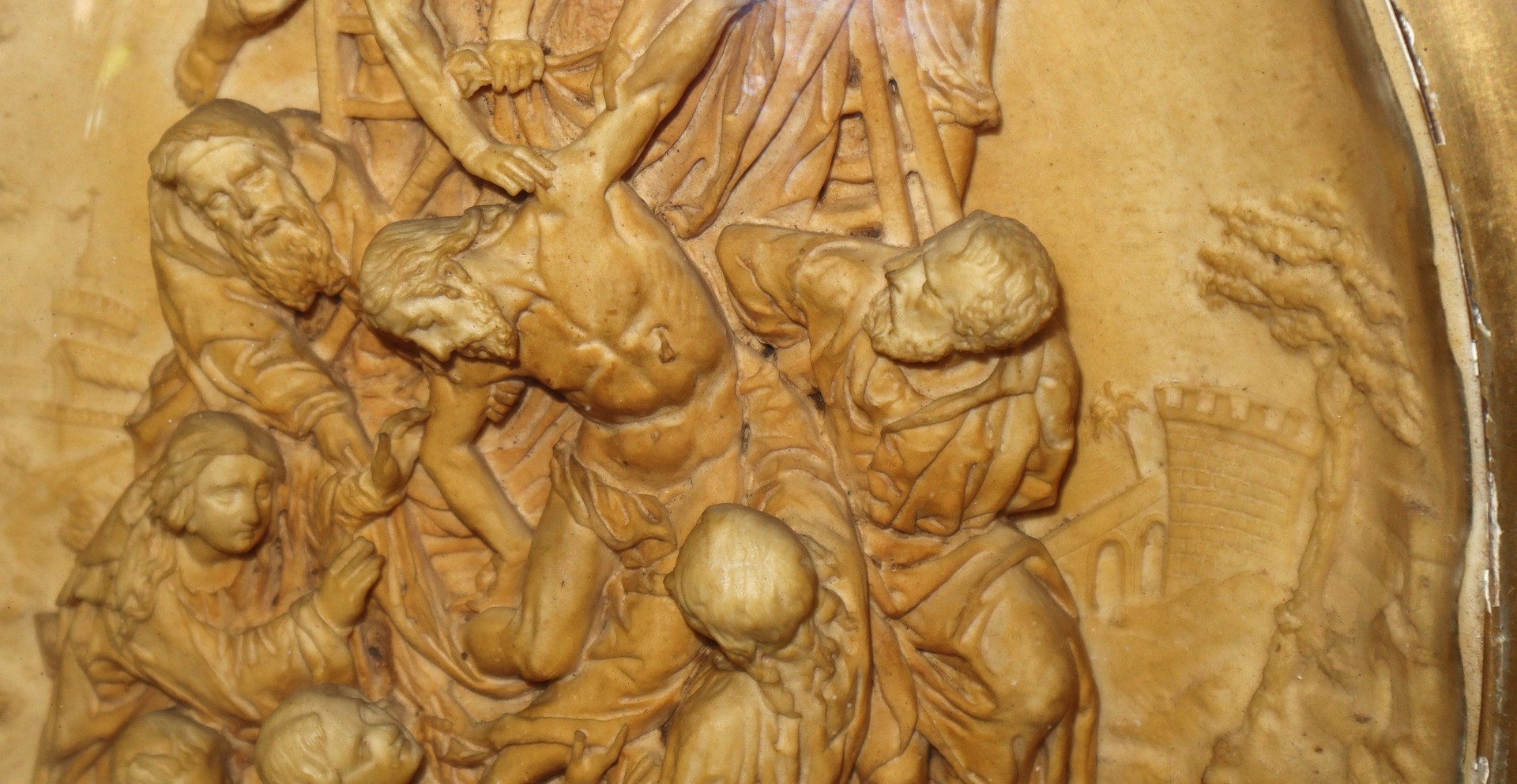 Deposizione di Cristo, scultura a rilievo in schiuma di mare entro cornice ovale, 19° secolo