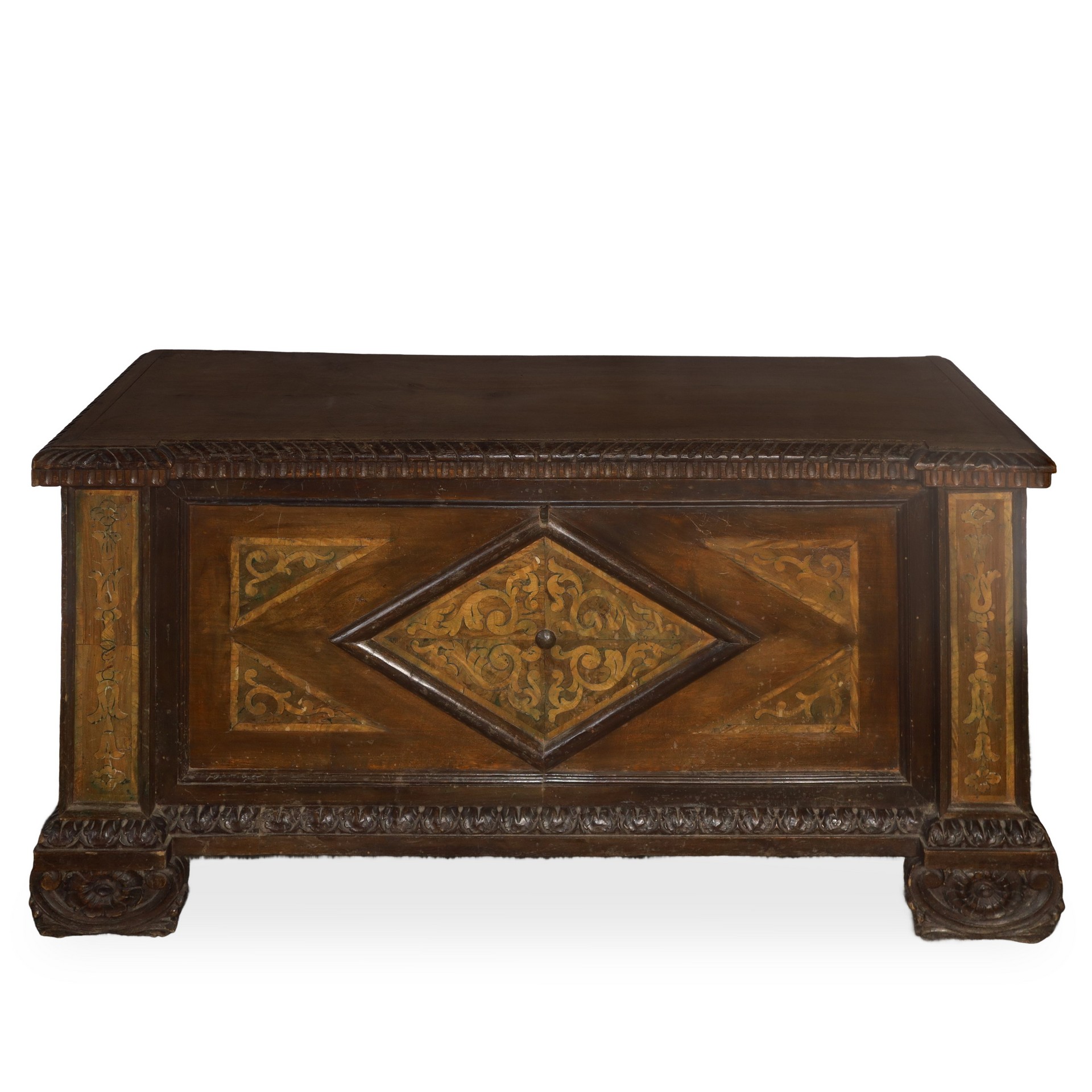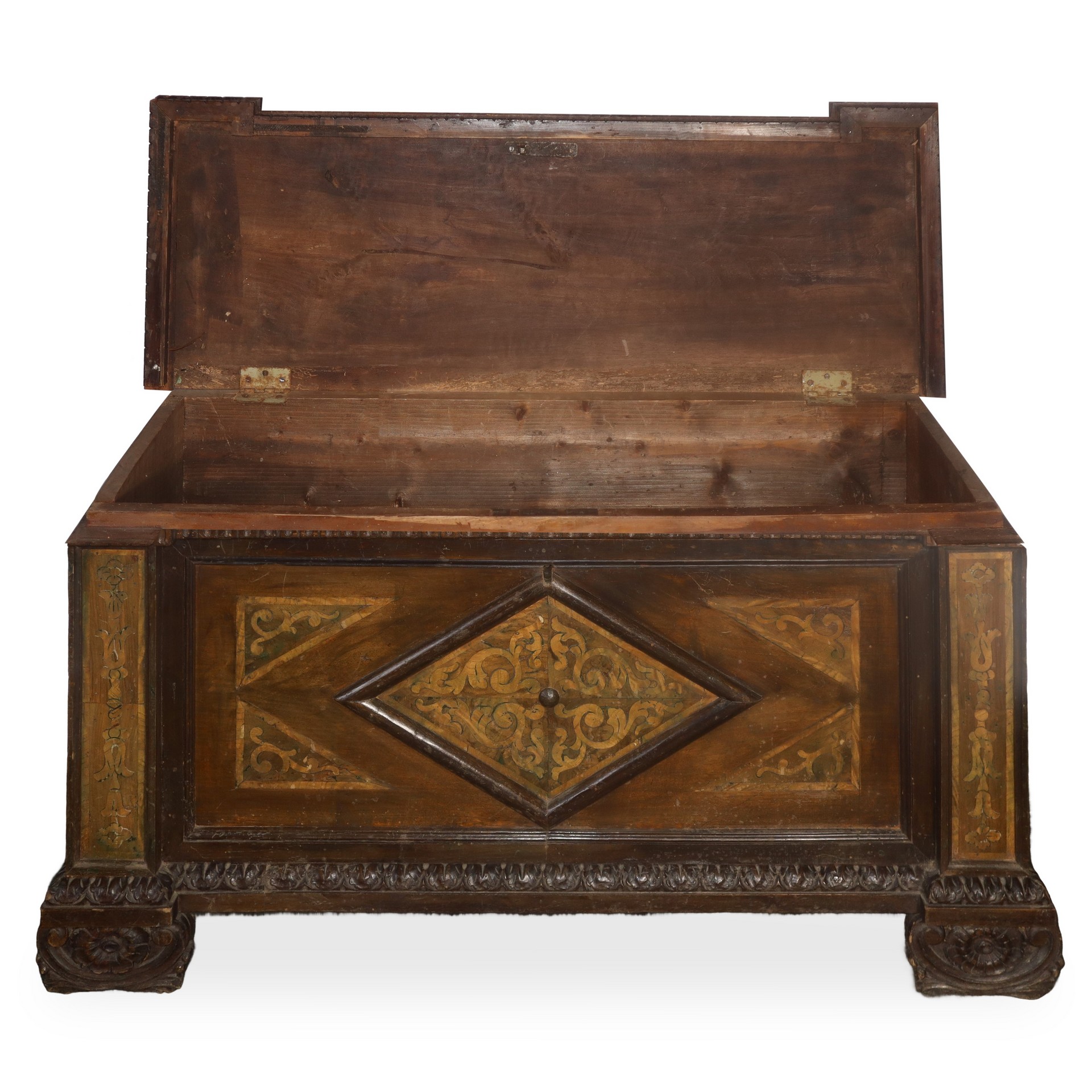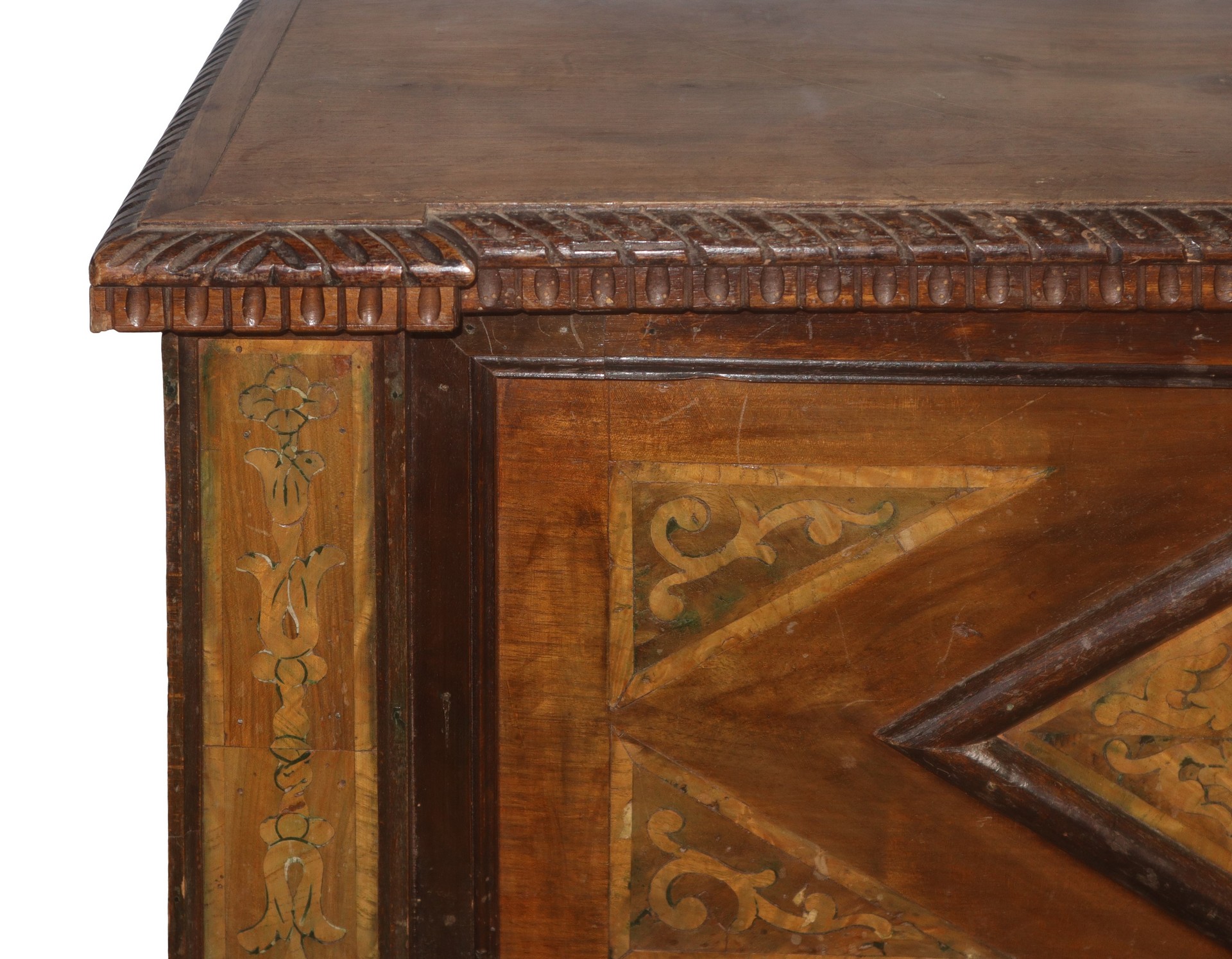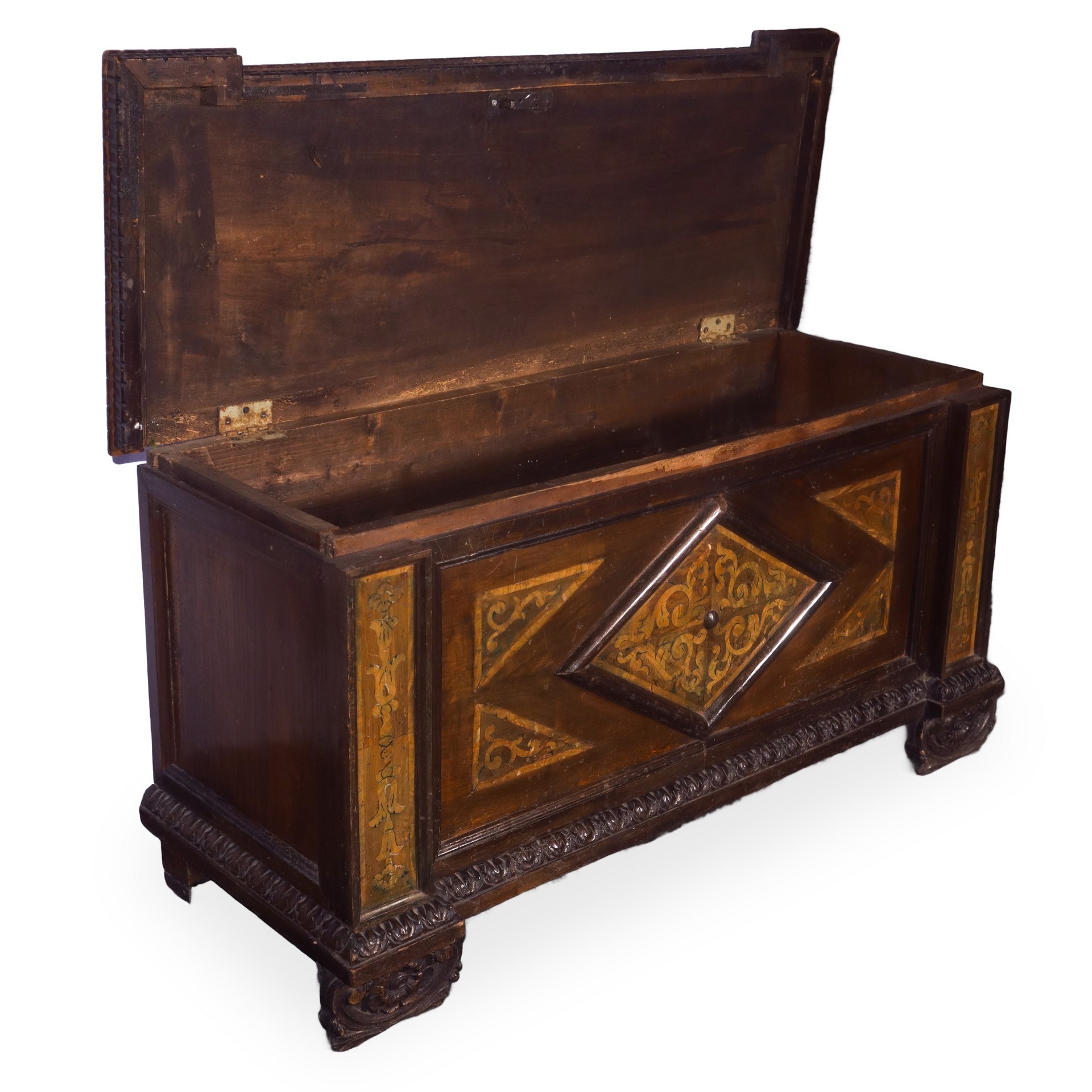 Piccola cassapanca intarsiata sul fronte, 19° secolo