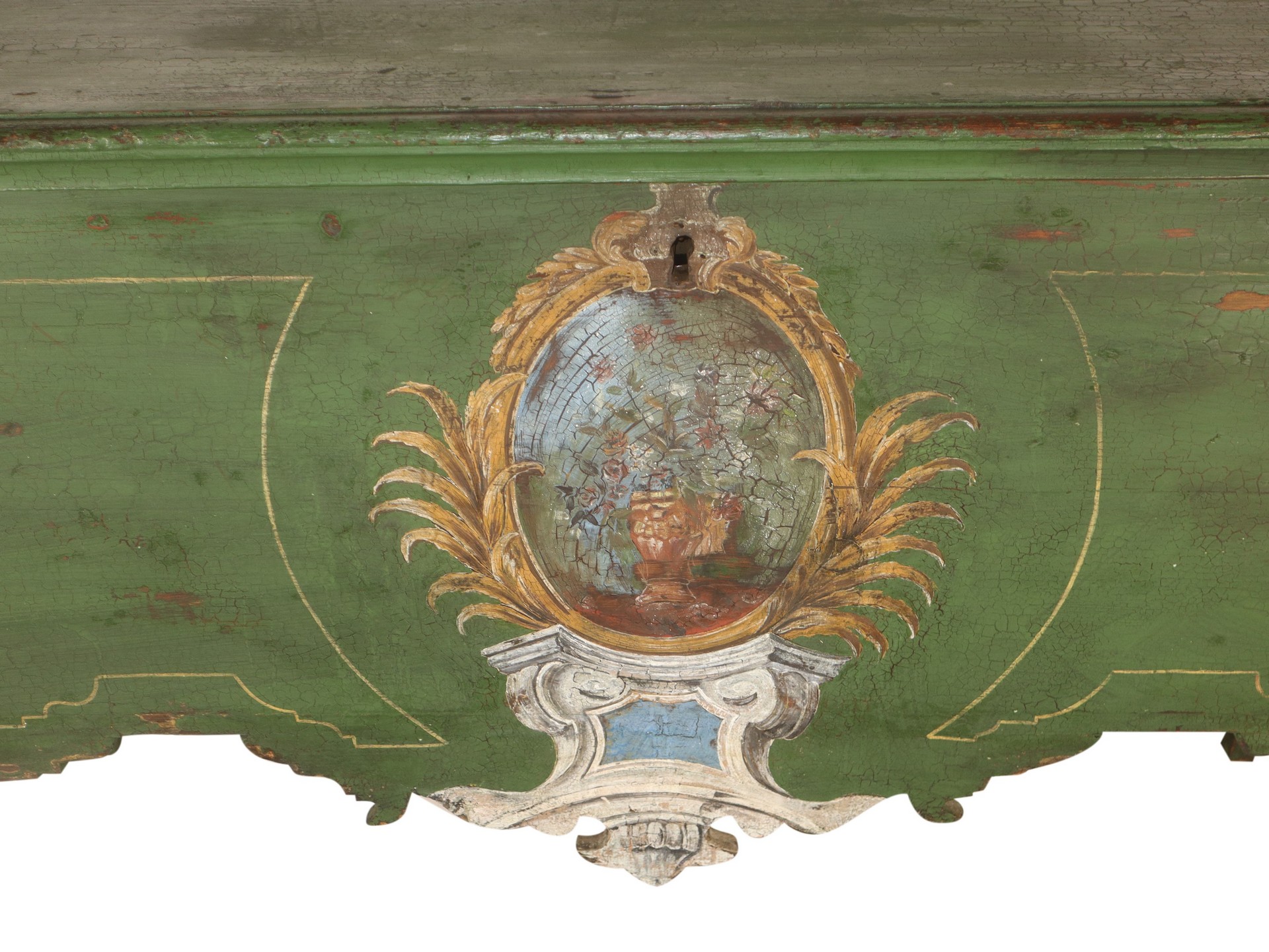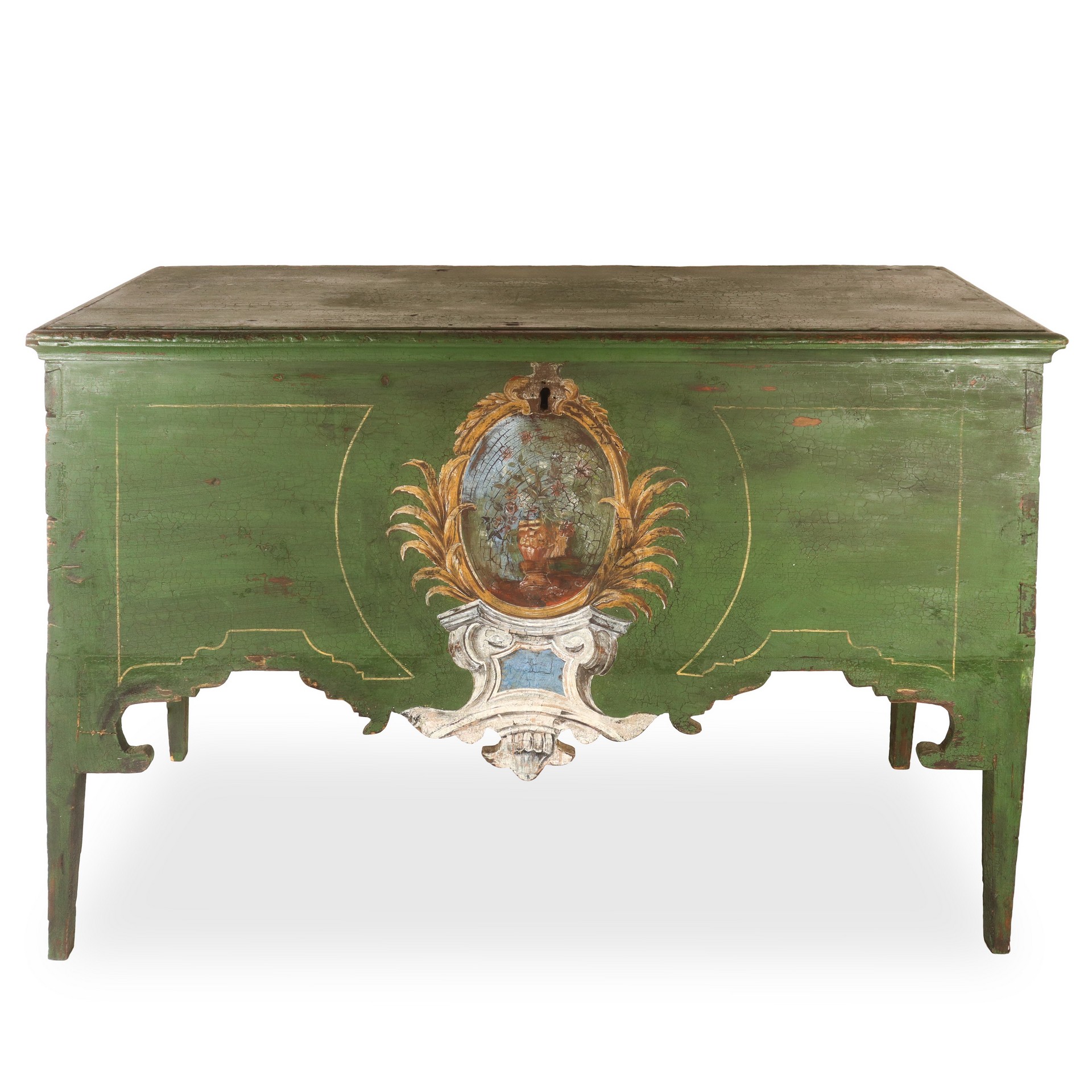Lot 164 | Cassapanca laccata e dipinta sul fronte con stemma araldico al centro, Sicily 18° secolo