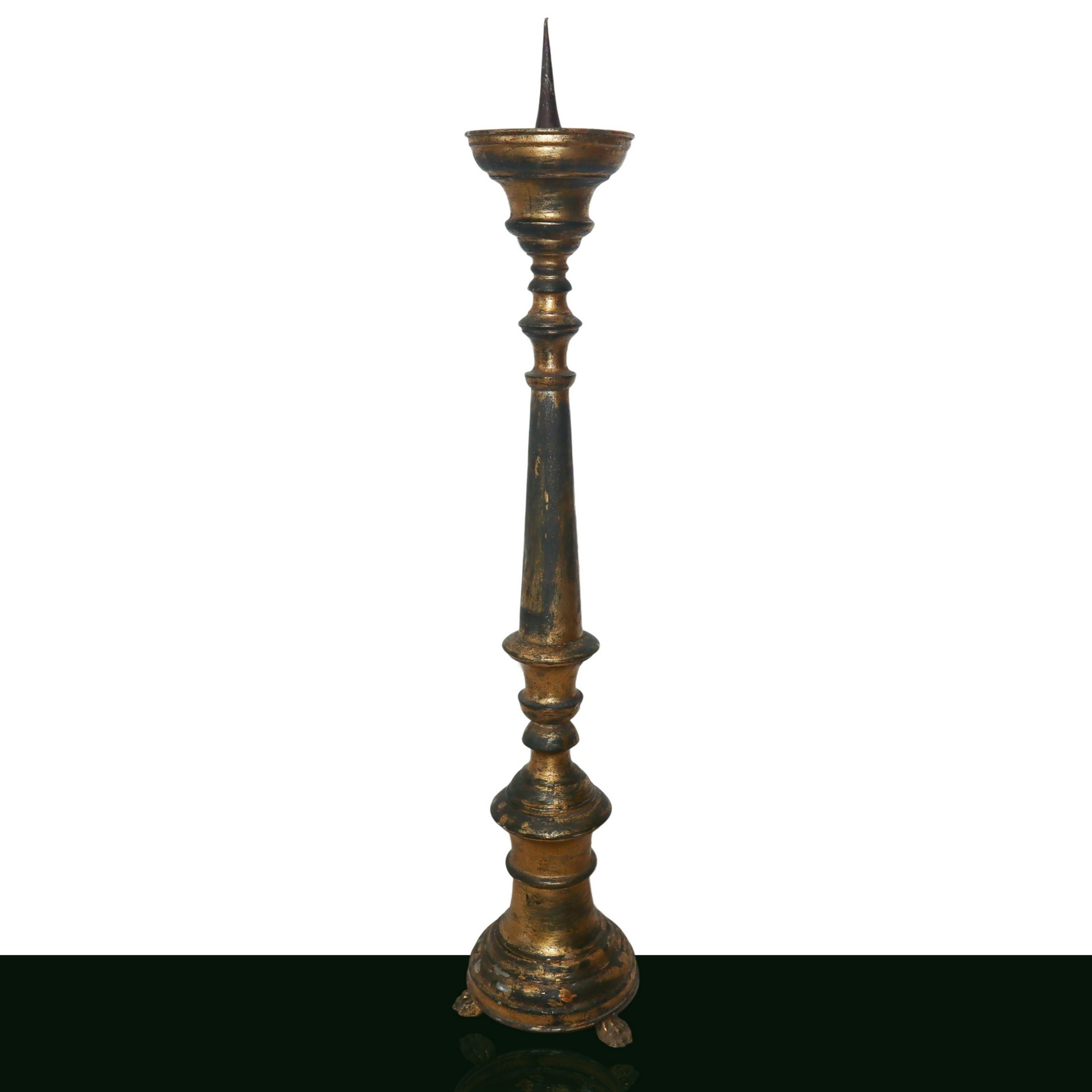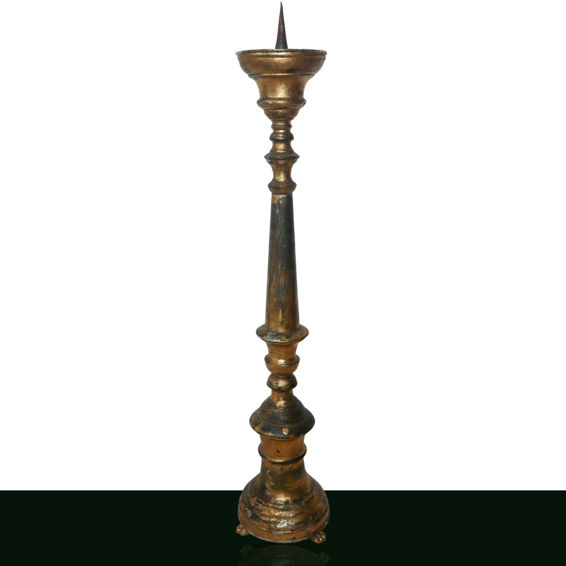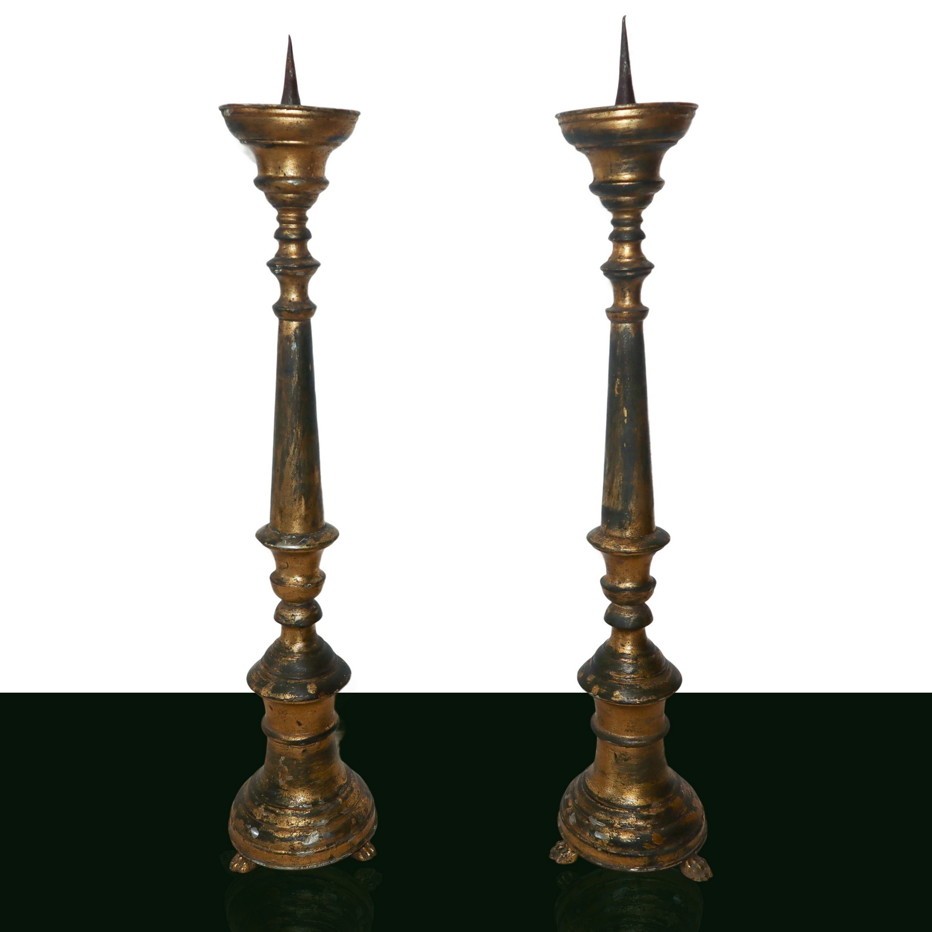 Coppia di candelieri dorati, 19° secolo h cm 74