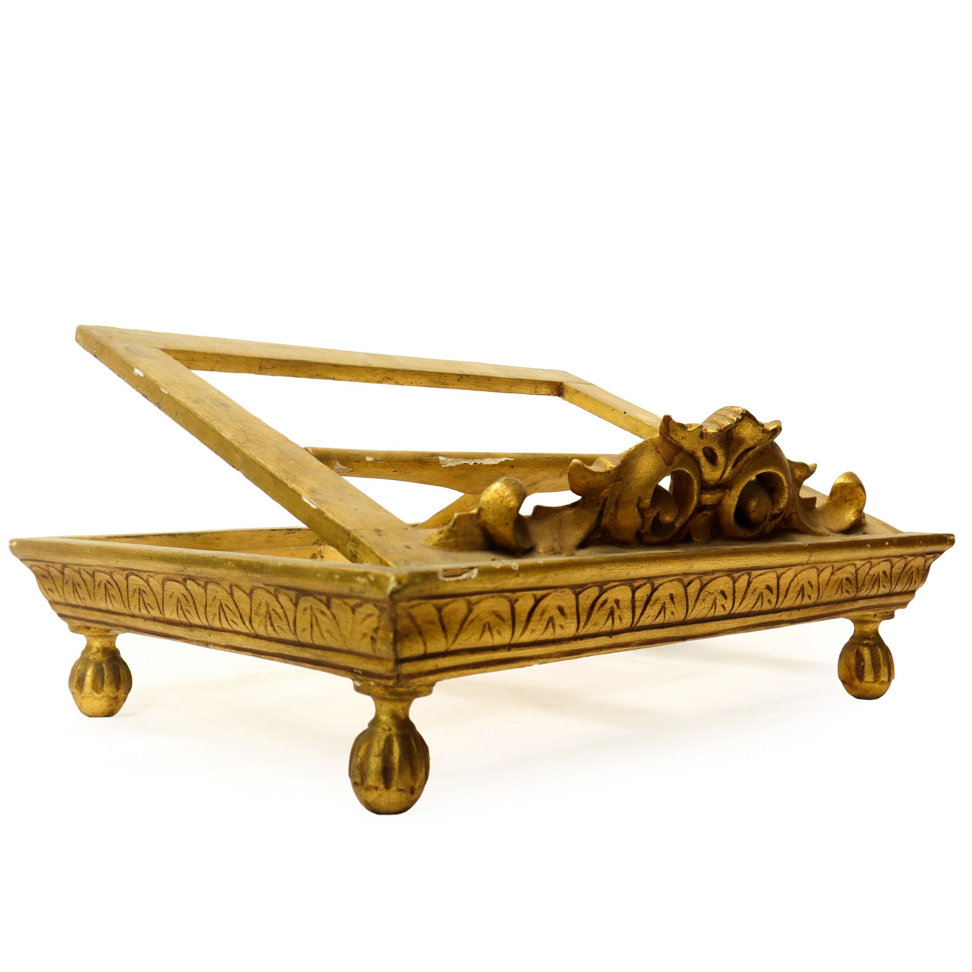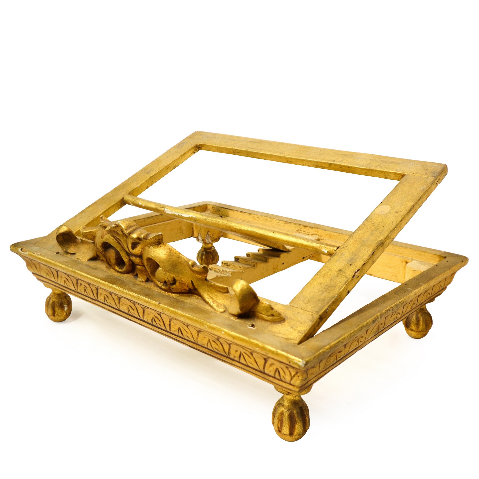 Leggio in legno dorato a foglia, fine 19° secolo h cm 16X32X40