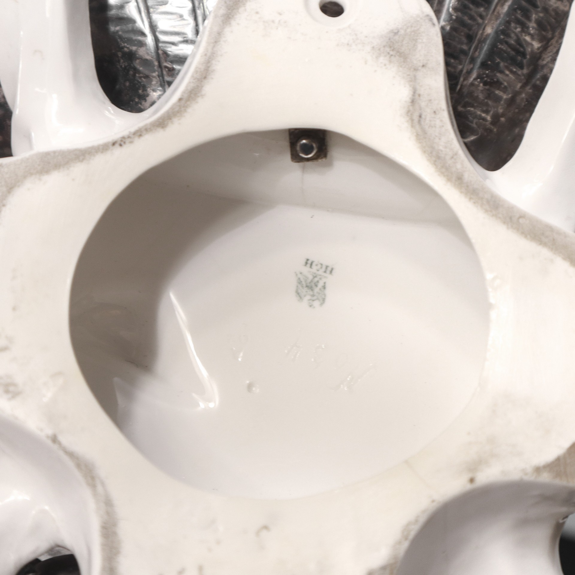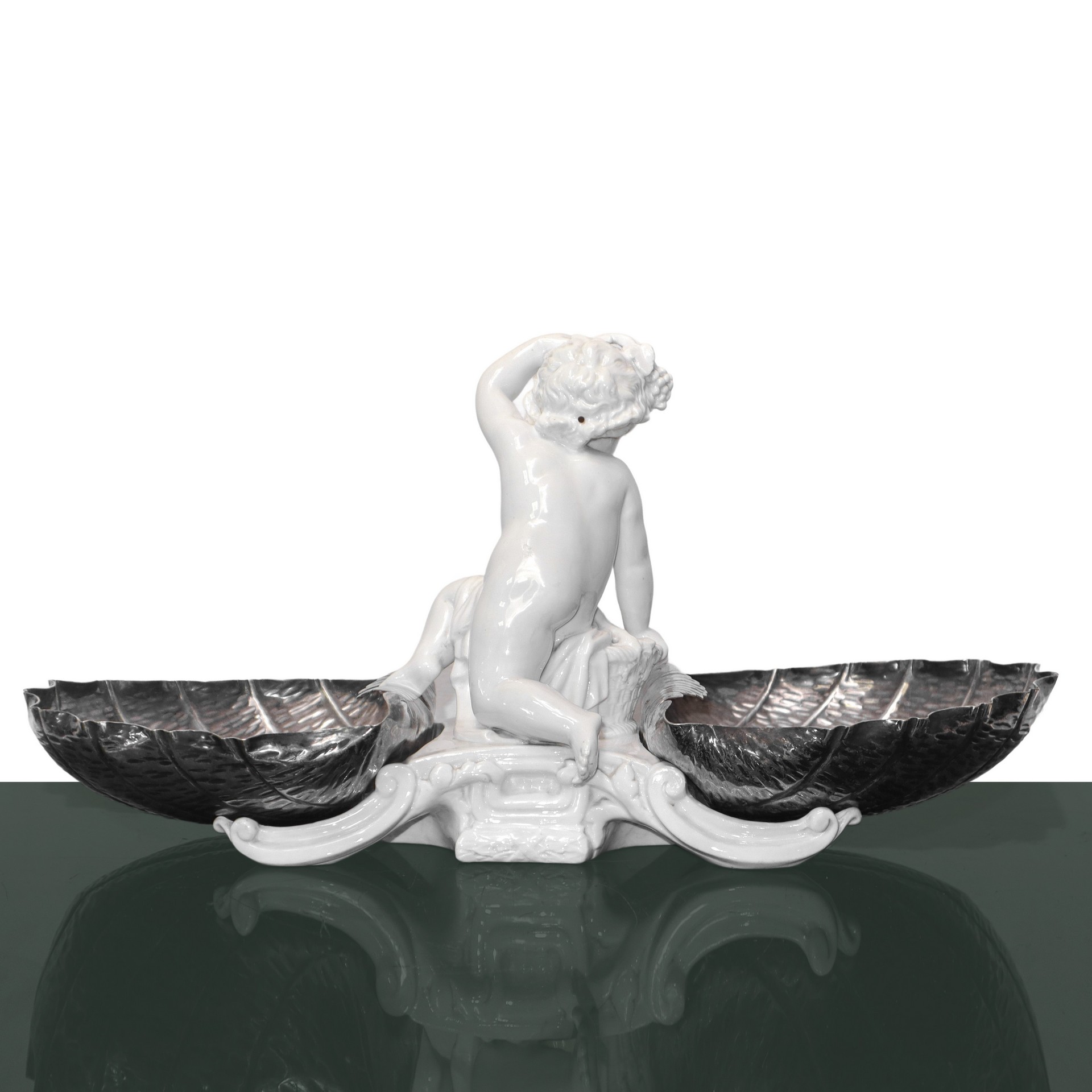 Alzata con putto in porcellana bianca e piatti a guisa di conchiglie in sheffield Marchio alla Marchio alla