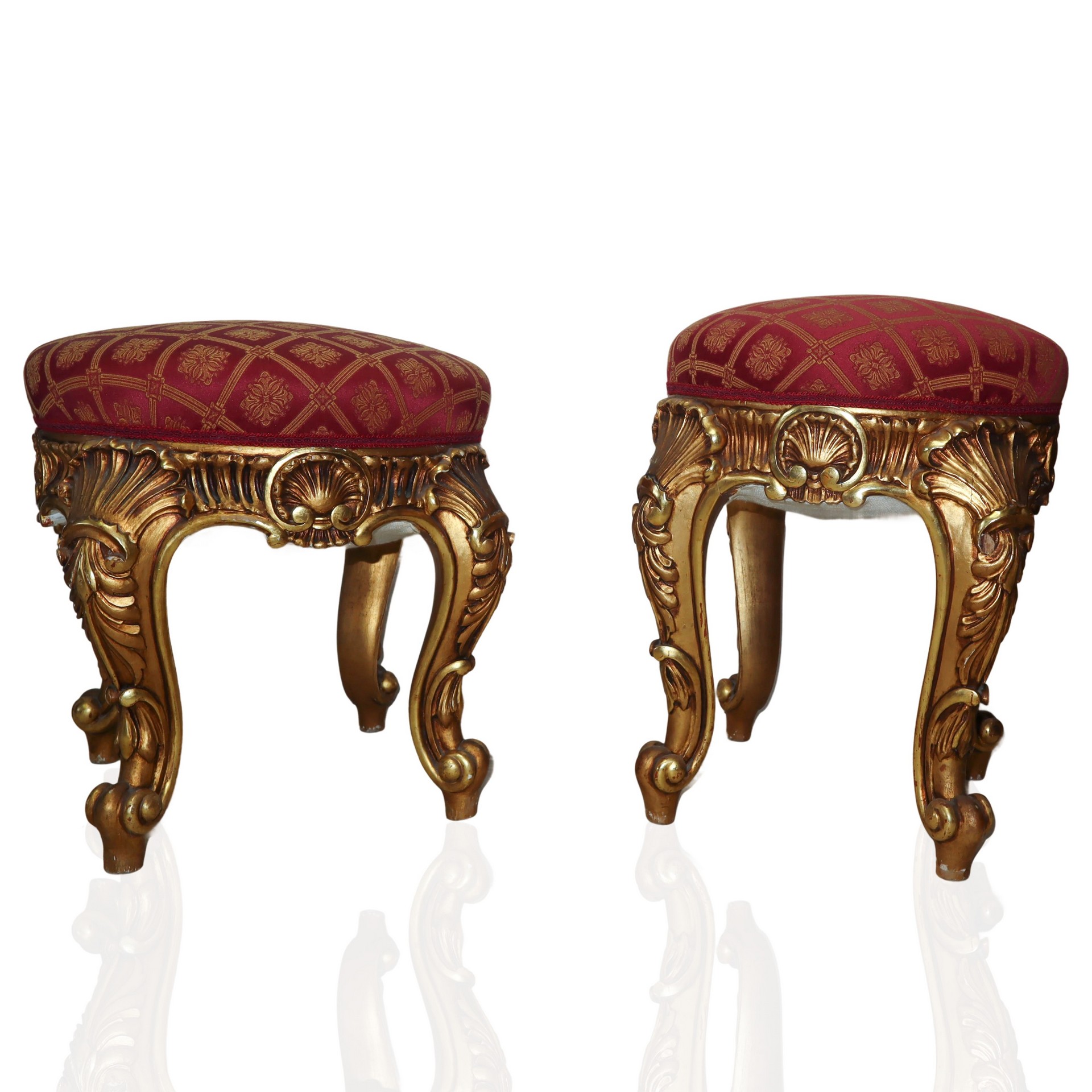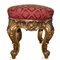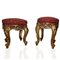 Coppia di sgabelli in legno dorato con tappezzeria rossa e dorata, fine 20° secolo