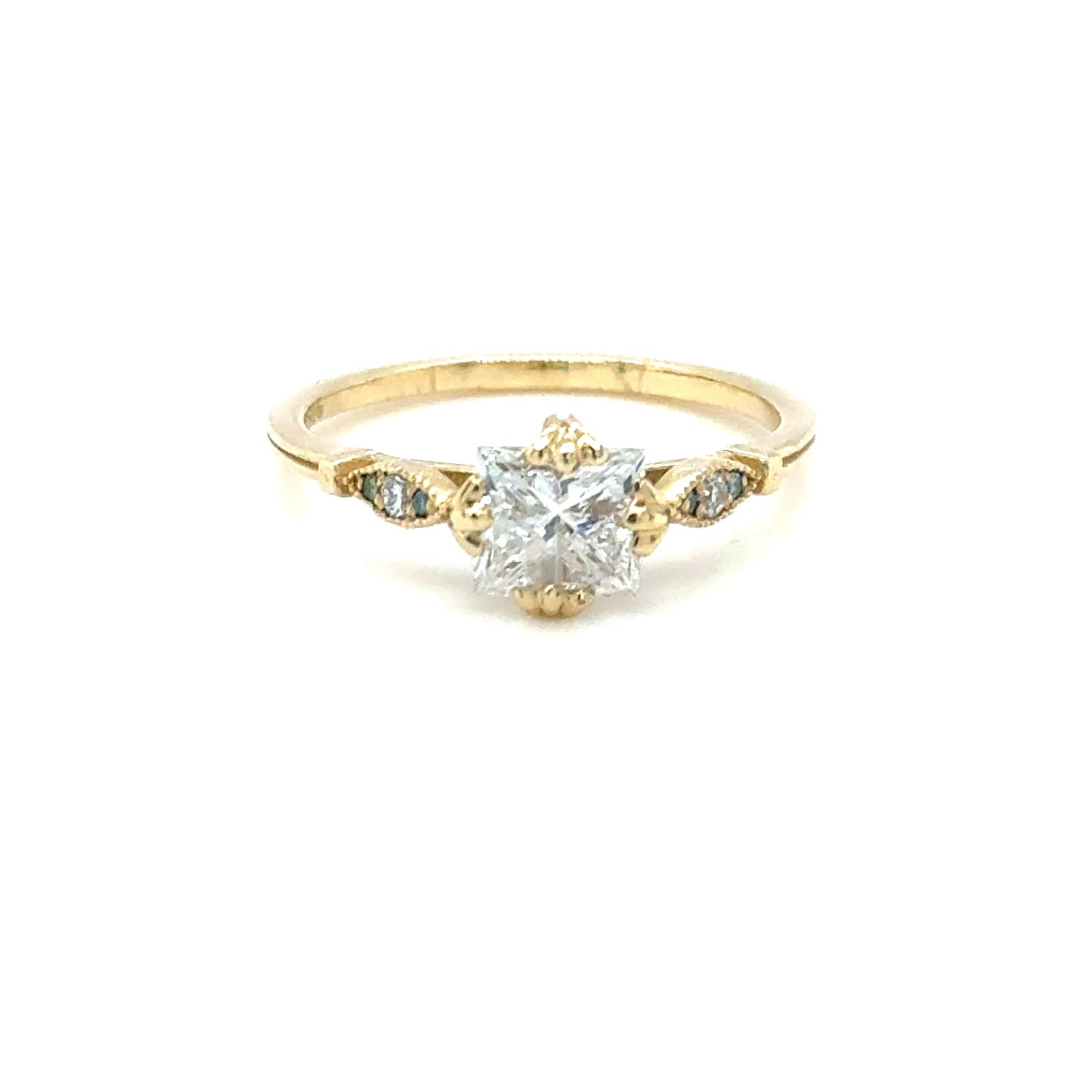 ANELLO IN ORO GIALLO 14K 1,90 GR CON DIAMANTE CENTRALE 1,00 CT COLORE F PUREZZA I1 BRILLANTI E BRILLANTI PER 0,11 CT COLORE D-F PUREZZA VS-S I- TAGLIA 6,5 – DH-R766 - COMMISSIONE D’ASTA 25%