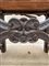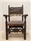 In legno di noce intagliato. Seduta e schienale rivestiti in pelle (difetti)