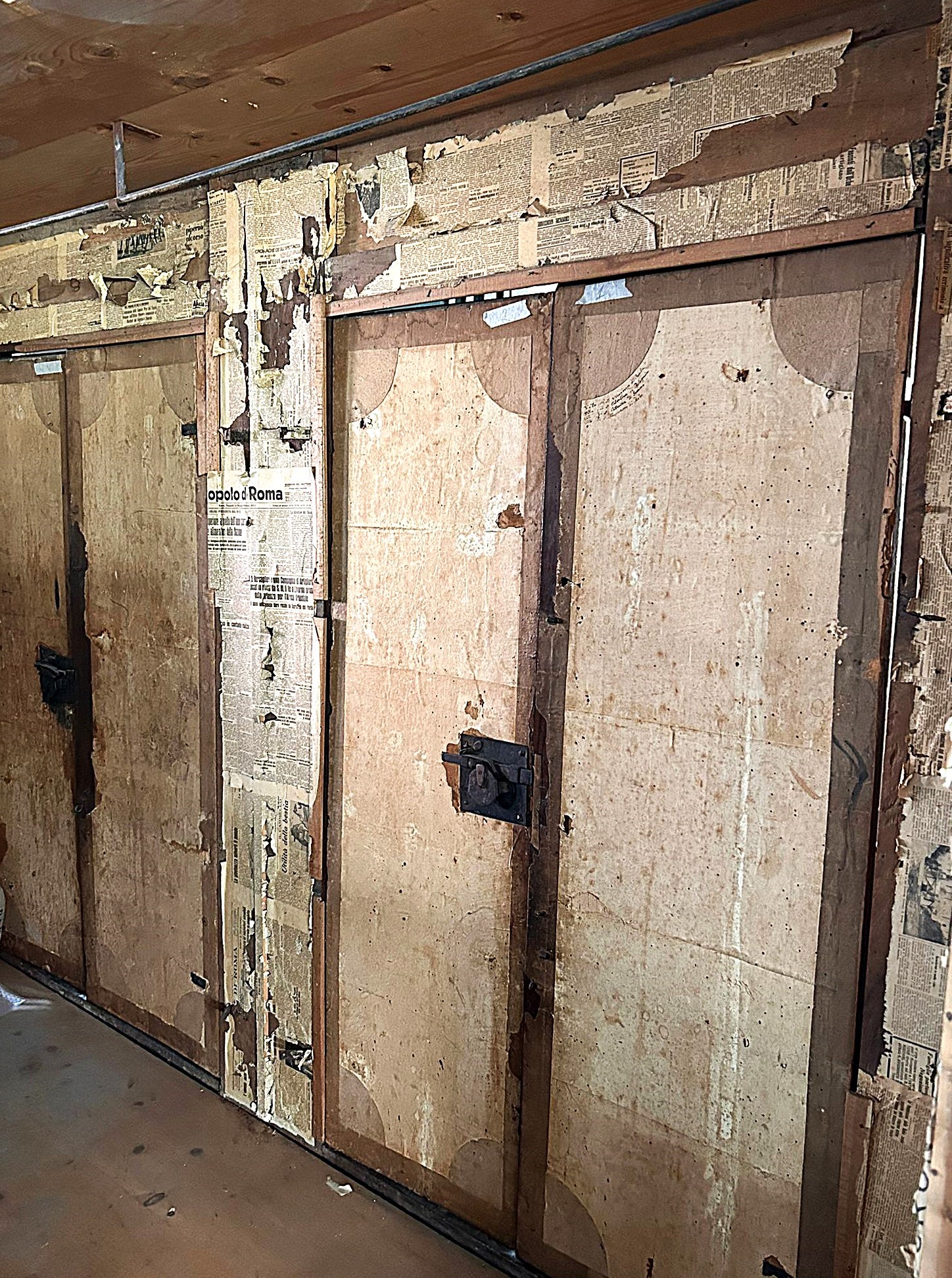 Sportelli Bugnati alternati da lesene scanalate a canna d'organo terminanti con capitello .