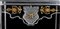 Piano modanato a tre livelli, gambe cilindriche, grambiale con stemma serigrafato recante monogramma con le iniziali di Massimo Papiri in oro e decori a rilievo in bronzo dorato con racemi.