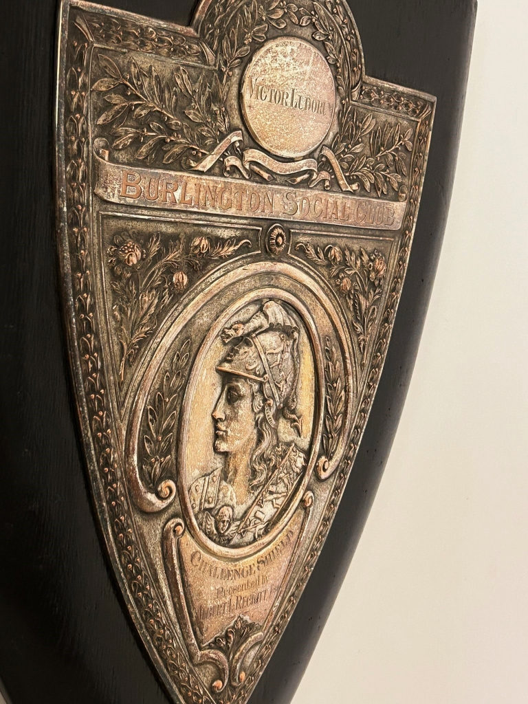 Burlington Social Club, Victor Ludorum Challenge Shield Presented by Albert L. Reckitt Esq. cm 72x52 (con supporto da tavolo)
