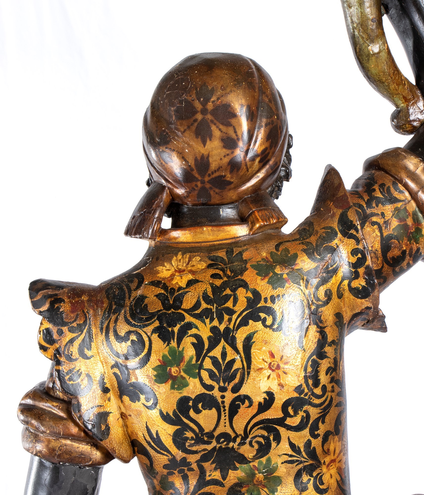 Grande scultura in stile veneziano raffigurante moro in legno policromo e dorato della fine del XIX secolo