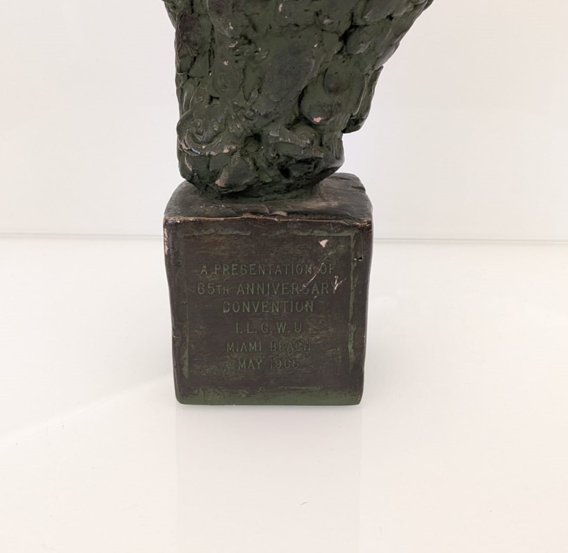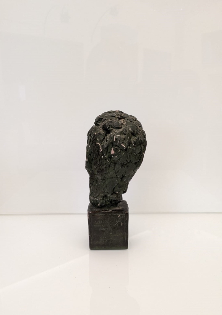 La scultura, base compresa, è realizzata in gesso e dipinta di verde scuro, montata con un'angolazione asimmetrica. Una targa incisa sul retro della base recita "A PRESENTATION OF 65TH ANNIVERSARY CONVENTION I.L.G.W.U. MIAMI BEACH MAY 1965"