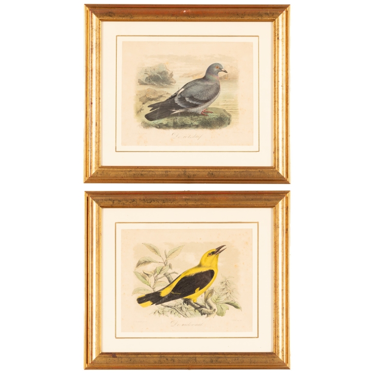 Lotto di 2 incisioni acquerellate rappresentanti uccelli cm 21,5x17; con cornice cm 35,5x31