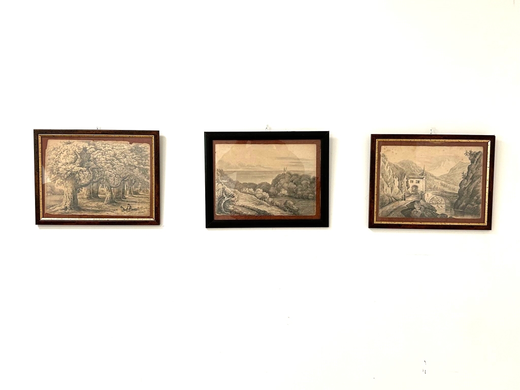 Lotto di 3 disegni della campagna inglese realizzati en plain air
