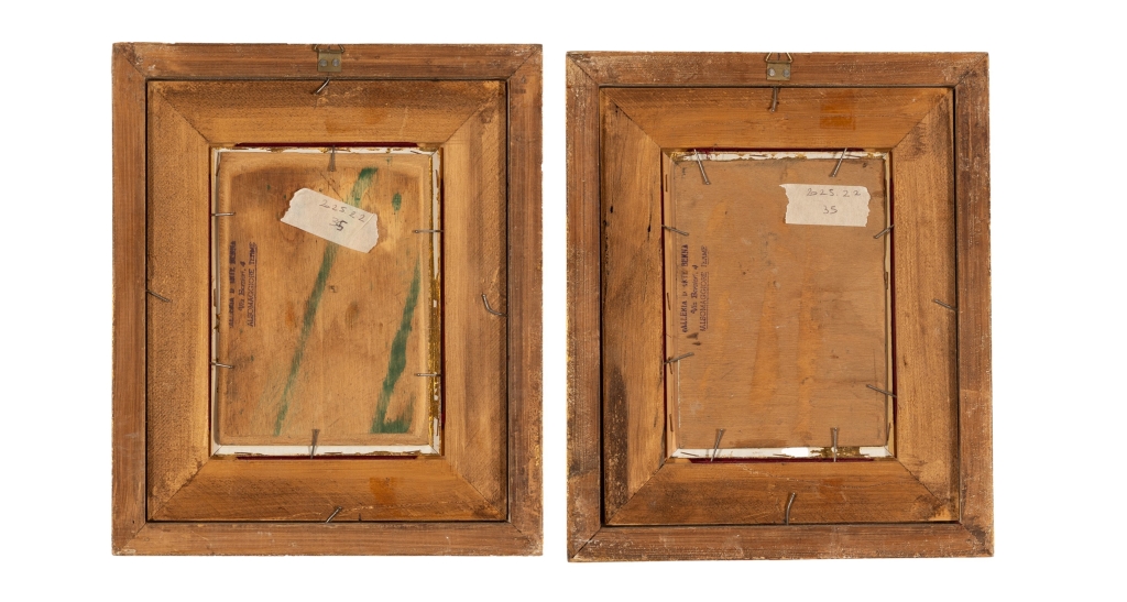Al retro di entrambi timbro della Galleria di Arte Berna via Berzieri 4 Salsomaggiore Terme