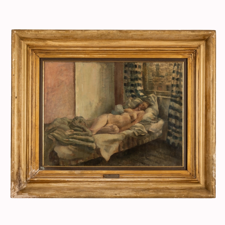 Andrea Gastaldi (Torino, 1826 - Torino, 1889) NUDO DISTESO XIXsec. olio su tela cm 46x59; con cornice cm 70x85