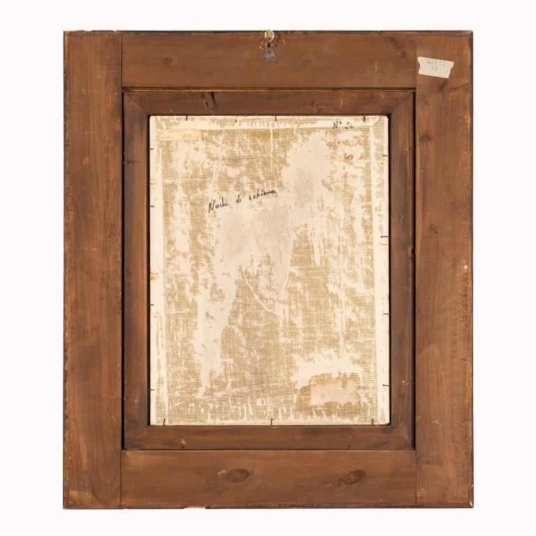 Giovanni Marchini (firma_di) (Forlì, 1877 - Forlì, 1946) Nudo di donna di tergo olio su tavola cm 45x35; con cornice cm 69x60