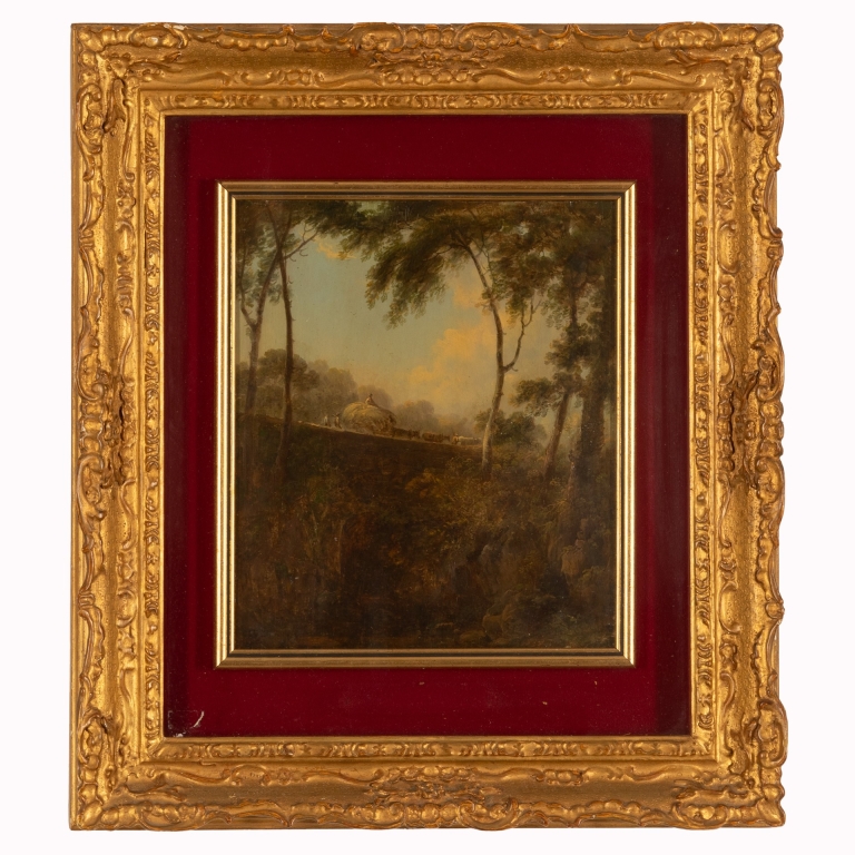 Consalvo Carelli (firma_di) (Napoli, 1818 - Napoli, 1900) Carovana di buoi e contadini olio su tavola cm 30x24,5; con cornice cm 50x44