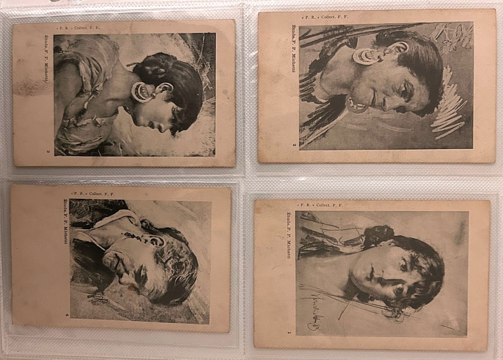 17) Lotto di 5 cartoline raffiguranti La figlia di Iorio dal quadro di F.P.Michetti. Tre in b/n e due a colori.