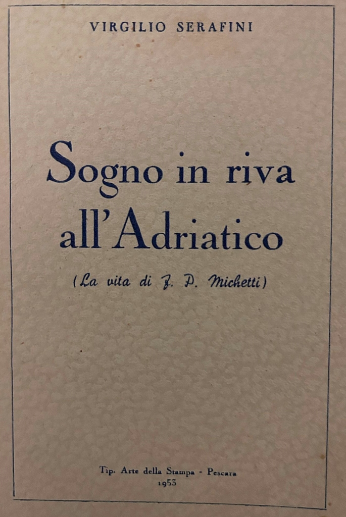 35) Volume di Virgilio Serafini. Sogno in riva all'Adriatico (la vita di F. P. Michetti) Tipografia Arte della Stampa Pescara, 1953