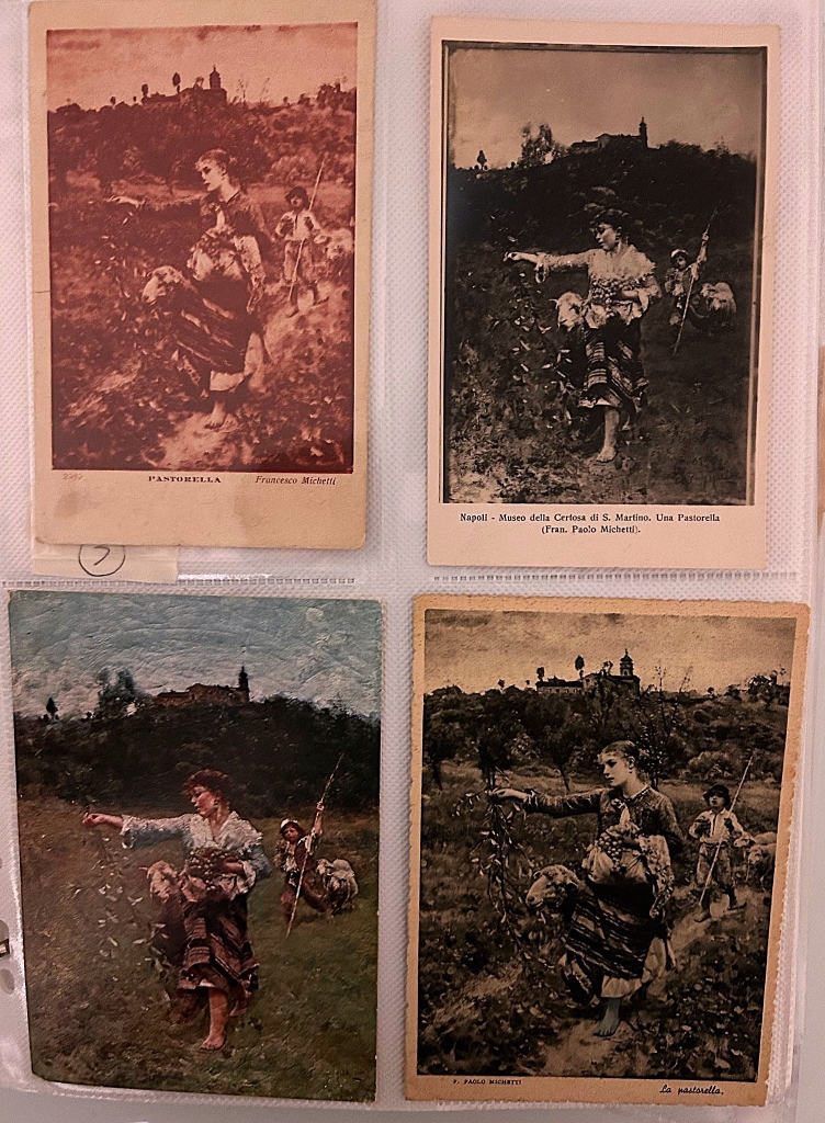 3) Serie di 17 cartoline tutte raffiguranti La Pastorella di F.P. Michetti - Galleria Nazionale d'Arte Moderna Roma, di cui 12 viaggiate e 5 no | 11 monocromi e 6 a colori.