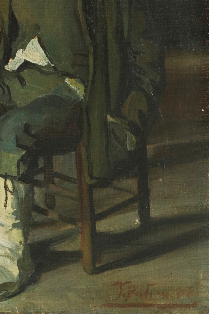 Teofilo Patini (Castel di Sangro, 1840 - Napoli, 1906) Interno domestico con figura maschile seduta, 1888