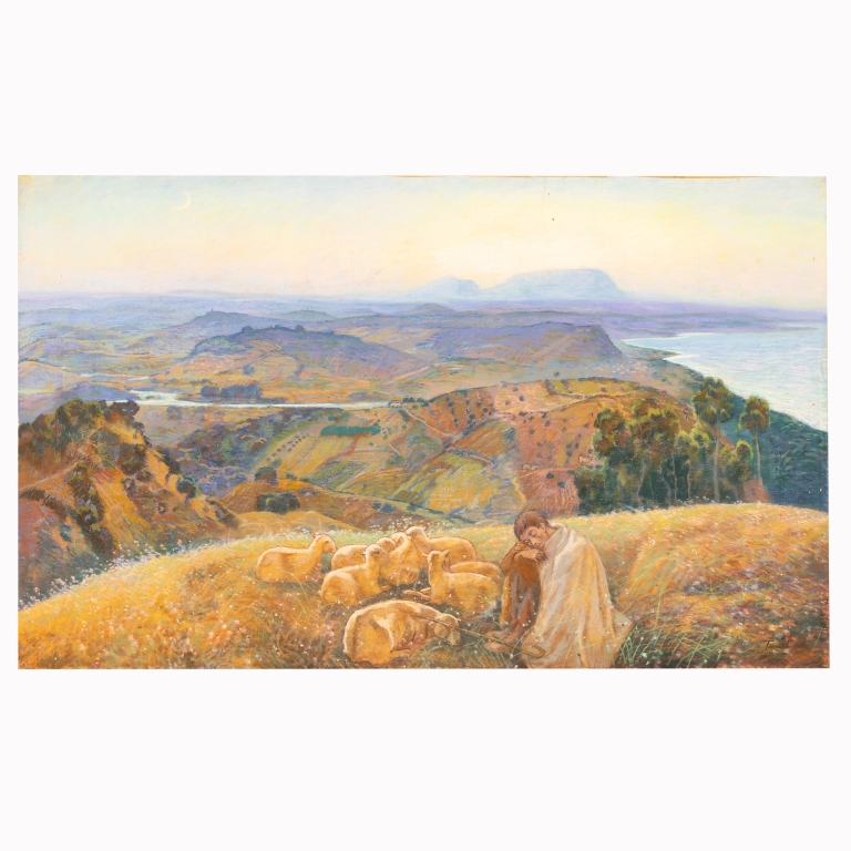 Tommaso Cascella (Ortona, 1890 - Pescara, 1968) "ABRUZZO AL TRAMONTO" pastello su carta h 77,5 x 126 L cm