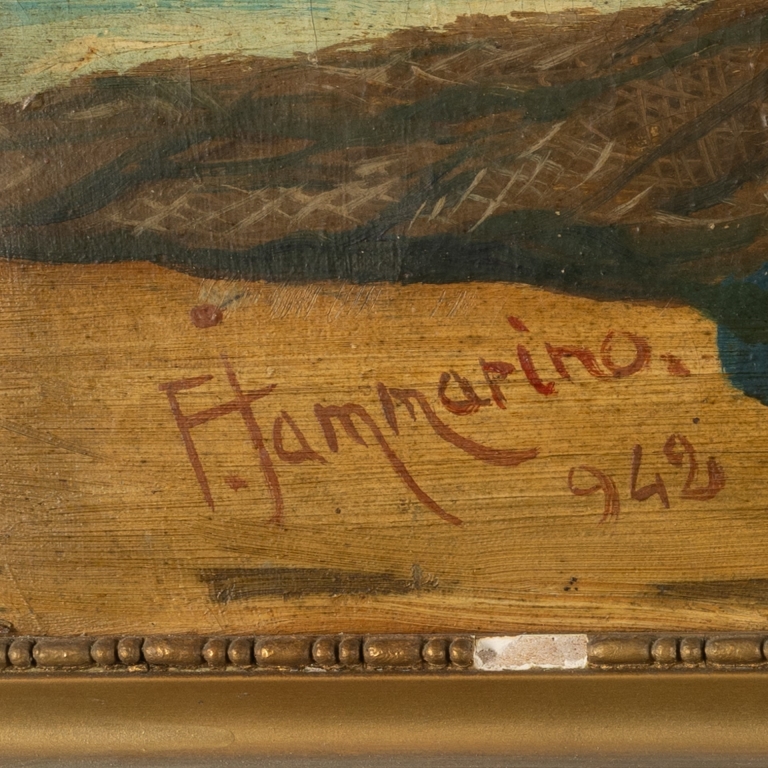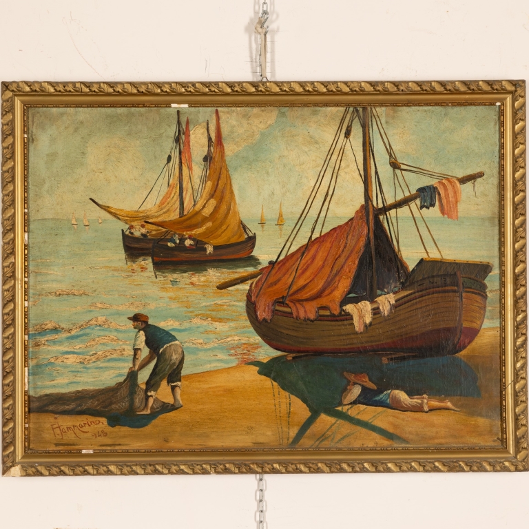Ferdinando Iammarino Ritorno dalla pesca 1942 olio su tela cm 52x72; con cornice cm 59x79