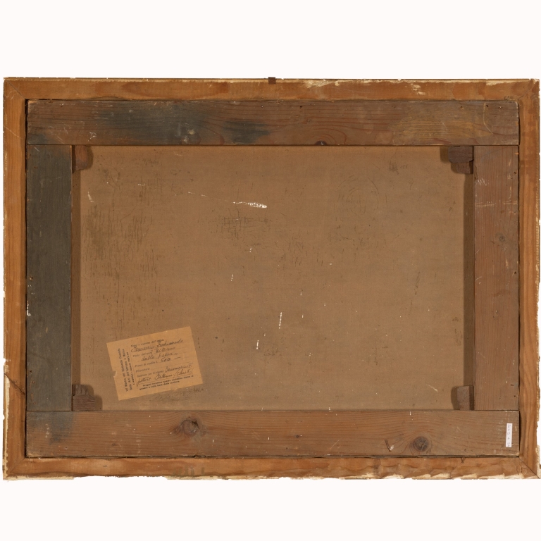 Al retro l'indicazione dell'Esposizione del dipinto del pittore vastese alla Settima Mostra Sindacale Fascista dell'anno 1942