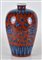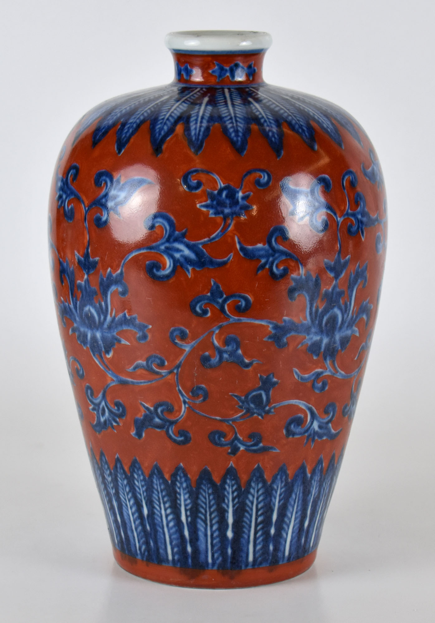 Cina vaso in porcellana fondo rosso con decoro blu e bianco